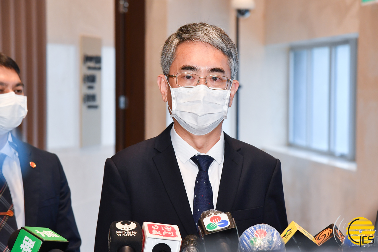 • Secretário para a Administração e Justiça, André Cheong, fala à comunicação social numa ocasião pública.