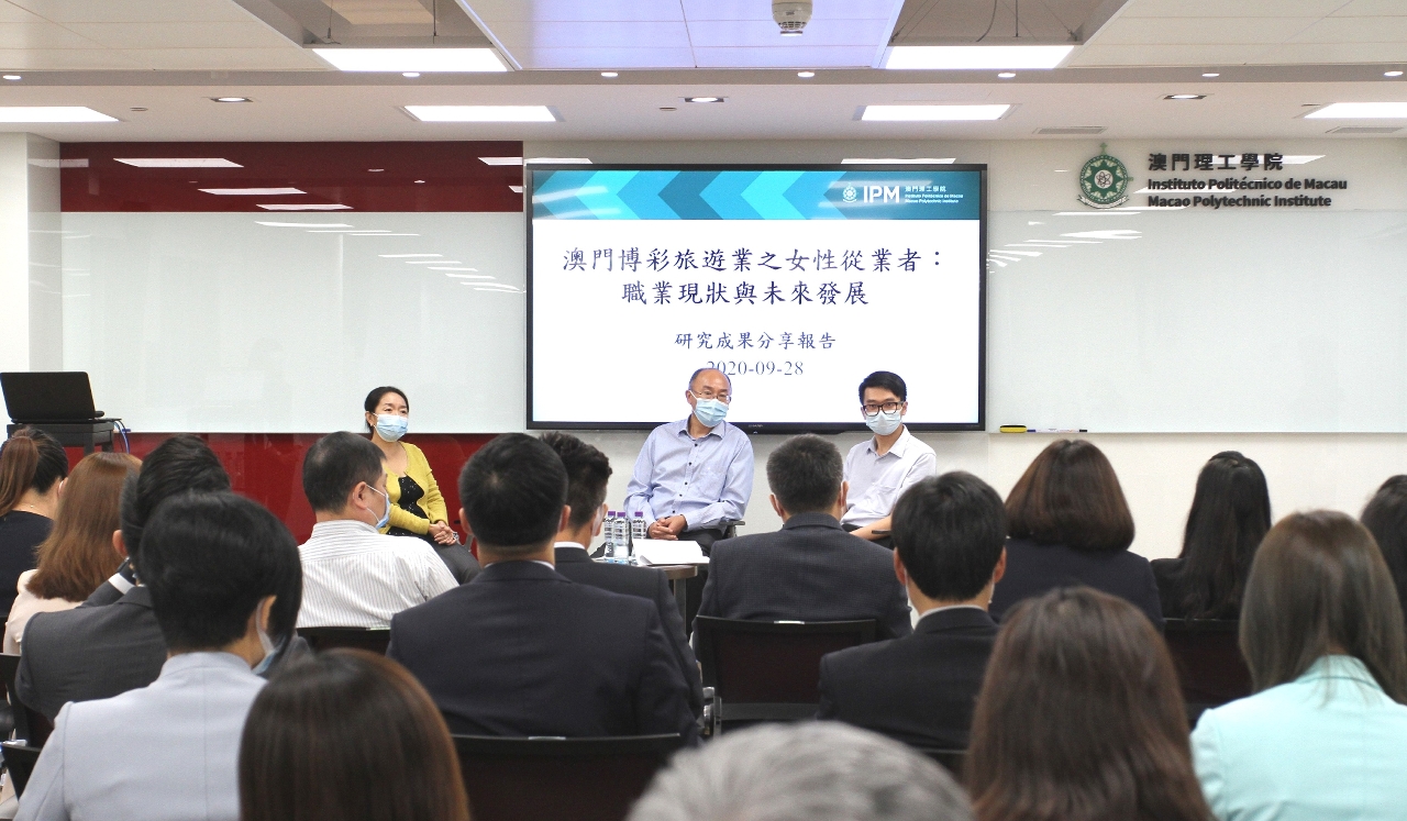 O Centro Pedagógico e Científico nas Áreas do Jogo e do Turismo do Instituto Politécnico de Macau (CJT-IPM) organizou, no dia 28 de Setembro, um salão académico com o tema de "Empregadas nos Sectores do Jogo e do Turismo de Macau: Circunstância Profissional Actual e Desenvolvimento Futuro". Este salão académico foi presidido pelos Professor Adjunto Zhou Jin Quan, a Assistente Liu Shuang e o Assistente Tang Chi Chong do CJT, que, tendo como ponto de partida diferentes abordagens, realizaram investigações e discussões profundas sobre o desenvolvimento profissional das empregadas nos sectores do jogo e do turismo em Macau.