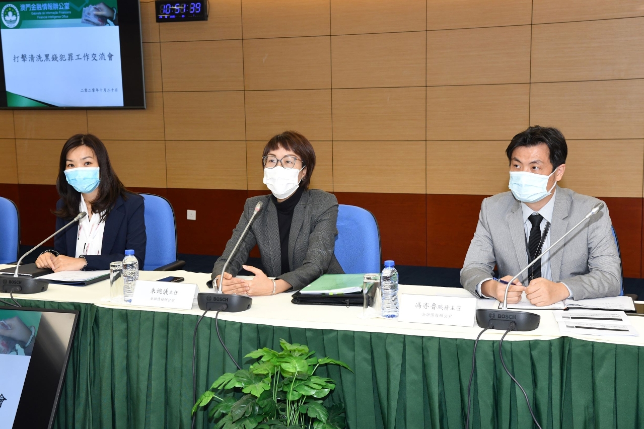 O Gabinete de Informação Financeira (GIF) realizou, em 20 de Outubro de 2020, com a Polícia Judiciária (PJ), uma “Sessão de Intercâmbio sobre o Combate ao Crime de Branqueamento de Capitais”, com o objectivo de manter uma comunicação estreita com a PJ, afim de melhor prevenir e reprimir as actividades de branqueamento de capitais que possam vir a ocorrer na RAEM e os respectivos riscos.
