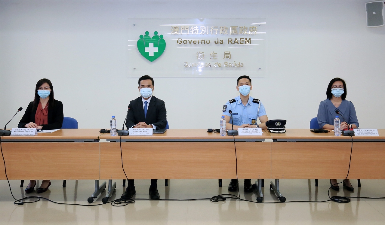 Estiveram presentes na conferência de imprensa o médico adjunto da Direcção do CHCSJ, Dr. Lo Iek Long, o Chefe da Divisão de Relações Públicas do Corpo de Polícia de Segurança Pública, Dr. Lei Tak Fai e a Chefe da Divisão de Relações Públicas da Direcção dos Serviços de Turismo, Dr.ª Lau Fong Chi e a coordenadora do Núcleo de Prevenção de Doenças Infecciosas do Centro de Prevenção e Controlo da Doença, Leong Iek Hou.