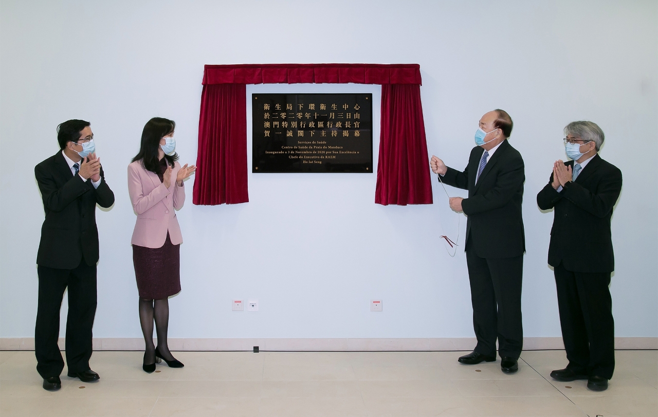 O Chefe do Executivo, Ho Iat Seng, inaugurou, terça-feira (3 de Novembro) o Centro de Saúde da Praia do Manduco, acompanhado da Secretária para os Assuntos Sociais e Cultura, Dr.ª Ao Ieong U, do Director dos Serviços de Saúde, Dr. Lei Chin Ion e do subdirector Dr. Cheang Seng Ip.