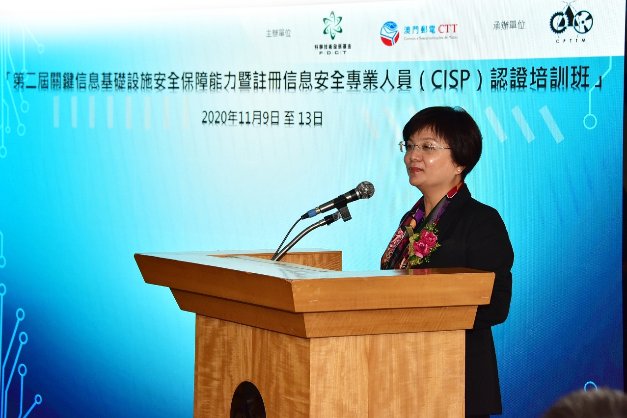 A cerimónia da abertura do curso decorreu no dia 9 de Novembro e foi presidida pela Directora dos CTT, Lau Wai Meng, pelo membro do Conselho de Administração do FDCT, Cheang Kun Wai e pelo director-geral executivo do CPTTM, Shuen Ka Hung. A epidemia não diminui a vontade dos formandos para adquirir conhecimentos, contando a acção de formação em epígrafe com a participação de 25 formandos provenientes das indústrias de Macau e da respectiva área, devendo os mesmos concluir o curso e passar na prova para obter a certificação nacional de nível mais alto para a qualificação dos profissionais de segurança informática, isto é, Certificação Nacional sobre o Registo dos Profissionais de Segurança da Informação (CISP).