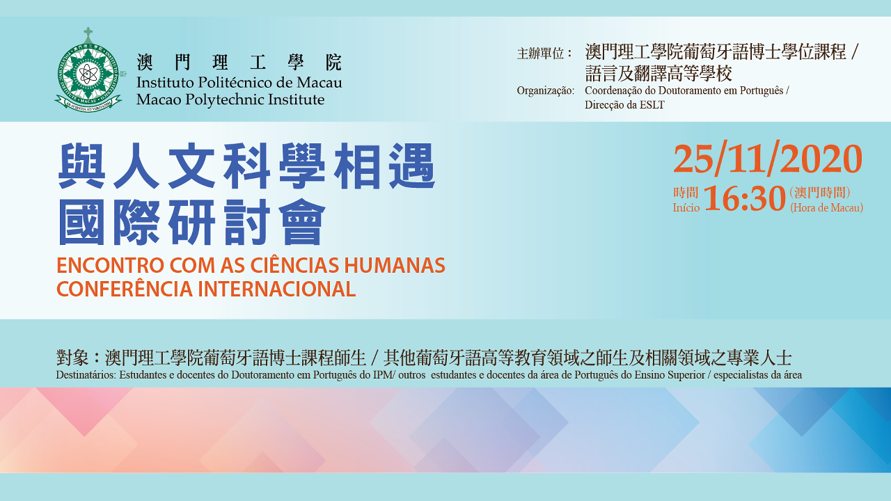 A Direcção da Escola Superior de Línguas e Tradução do IPM e a Coordenação do Doutoramento em Português do IPM estão a organizar o evento científico “Encontro com as Ciências Humanas – Conferência Internacional” que decorrerá no dia 25 de Novembro próximo, a partir das 16h30 (hora local), aberto a todos os interessados.