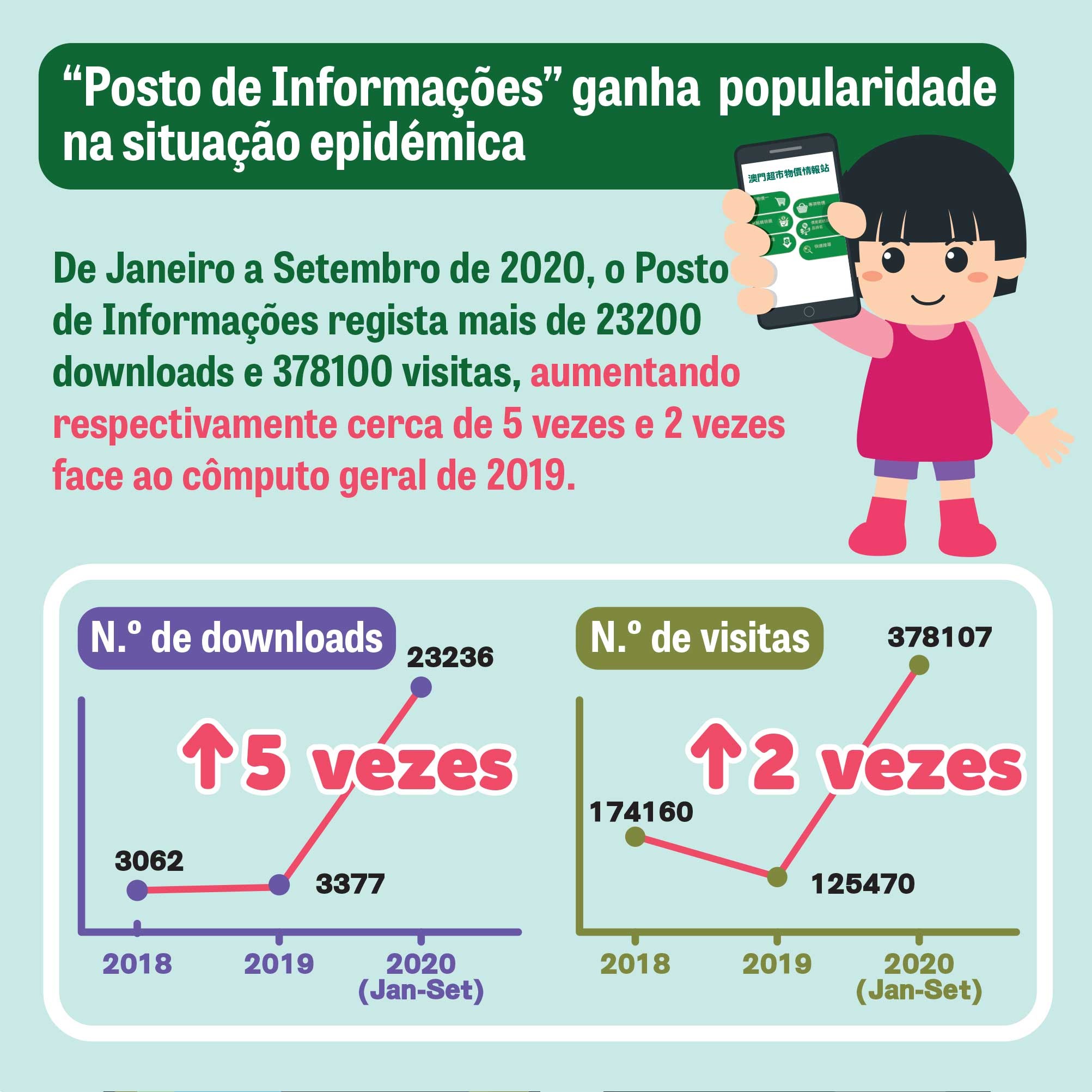 Em resposta às solicitações dos consumidores sobre as informações de preço de produtos na situação epidémica, o CC optimizou o Posto de Informações de Preços de Macau, que, em 2020, registou o aumento constante no número de visitas, atingindo o recorde desde o seu lançamento. Até Setembro deste ano, o número total de downloads e o de visitas ultrapassaram, respectivamente, 23200 e 378100, 5 vezes e 2 vezes maior do que o número total registado em 2019. O CC irá continuar a intensificar a investigação de preços e a optimização do “Posto de Informações”.