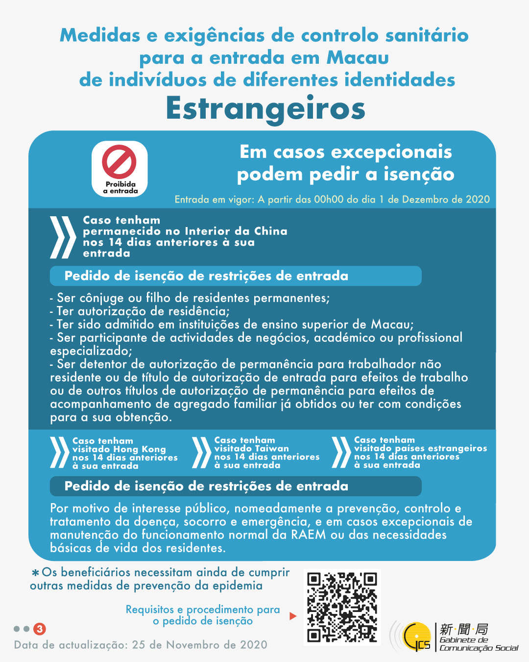 (Infografia) Medidas e exigências de controlo sanitário para a entrada em Macau de indivíduos de diferentes identidades