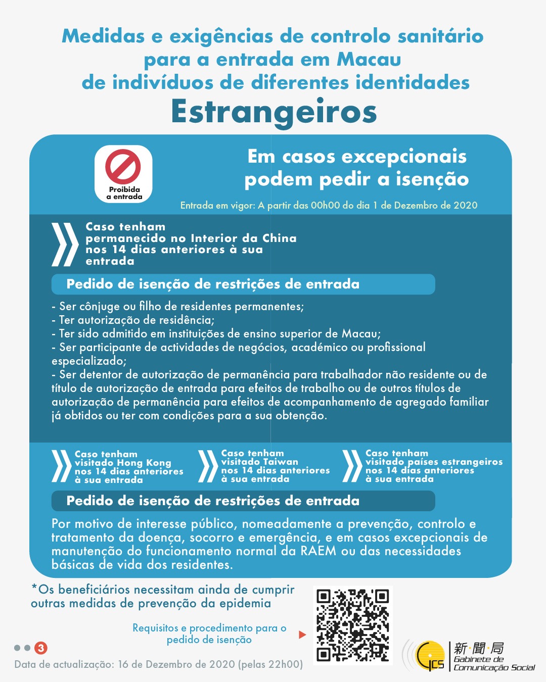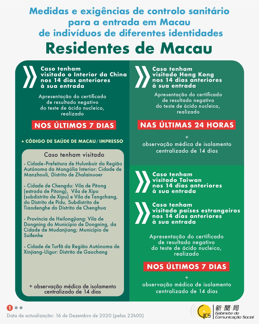 (Infografia) Medidas e exigências de controlo sanitário para a entrada em Macau de indivíduos de diferentes identidades