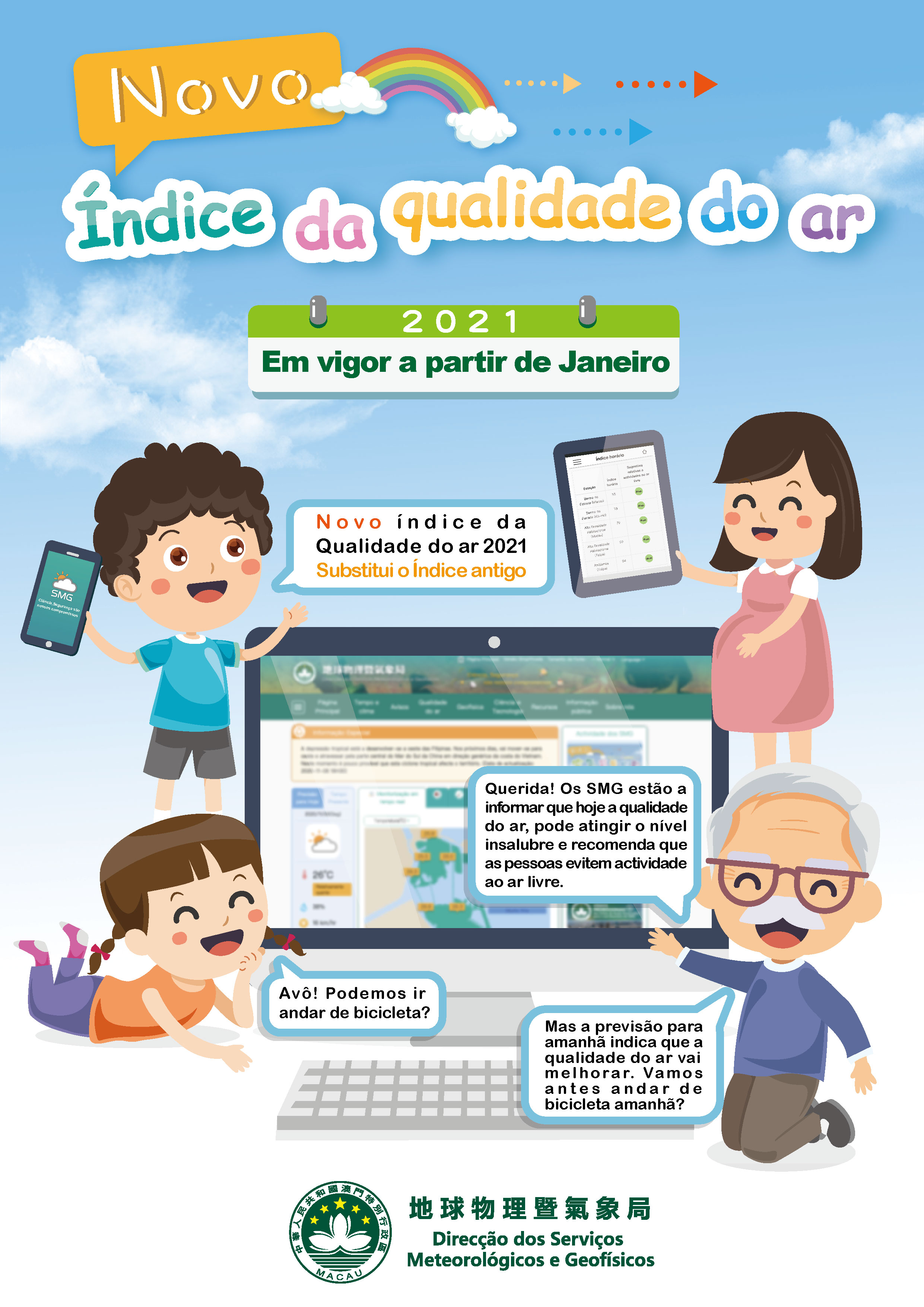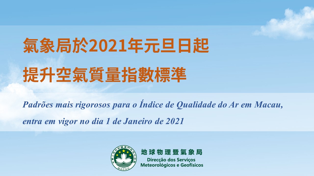 Com o intuito de proteger a saúde pública, a Direcção dos Serviços Meteorológicos e Geofísicos, vai actualizar o índice da qualidade do ar (IQA), a partir de 1 de Janeiro de 2021, adoptando padrões mais rigorosos para as concentrações de poluentes que correspondem a vários níveis da qualidade do ar. Simultaneamente, vão reforçar-se os alertas e as recomendações e medidas preventivas para grupos sensíveis da população. Os ícones e a forma de apresentação serão actualizados.