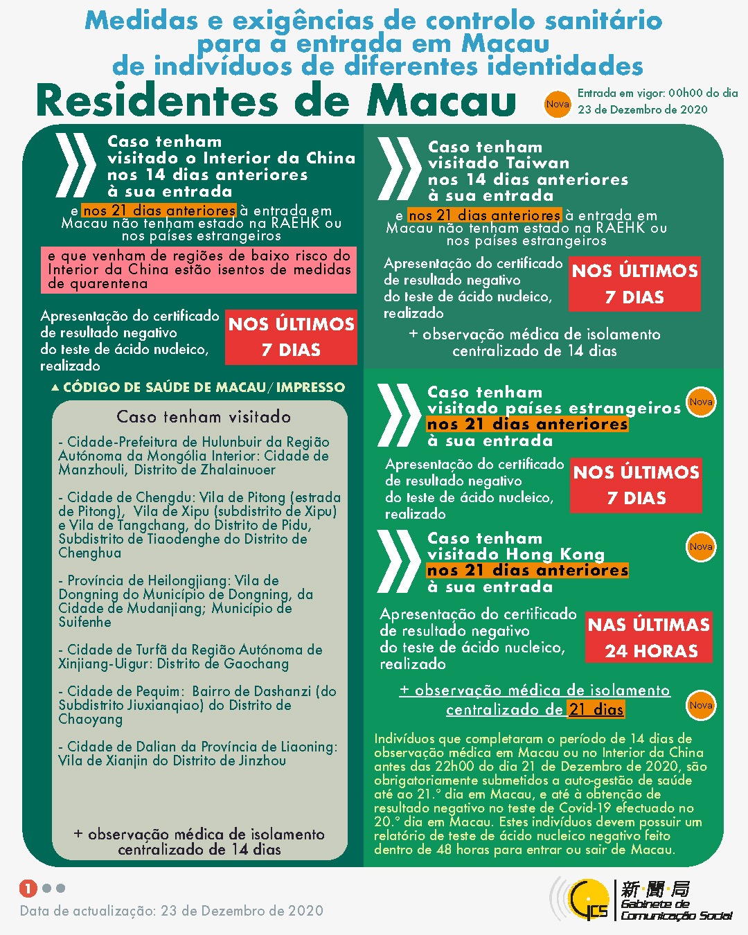 (Infografia) Medidas e exigências de controlo sanitário para a entrada em Macau de indivíduos de diferentes identidades