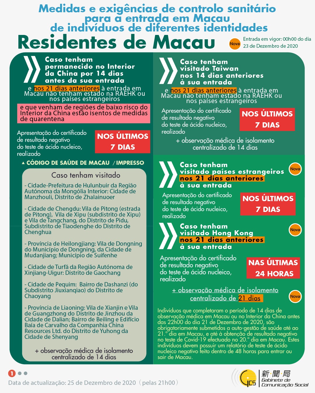 (Infografia) Medidas e exigências de controlo sanitário para a entrada em Macau de indivíduos de diferentes identidades