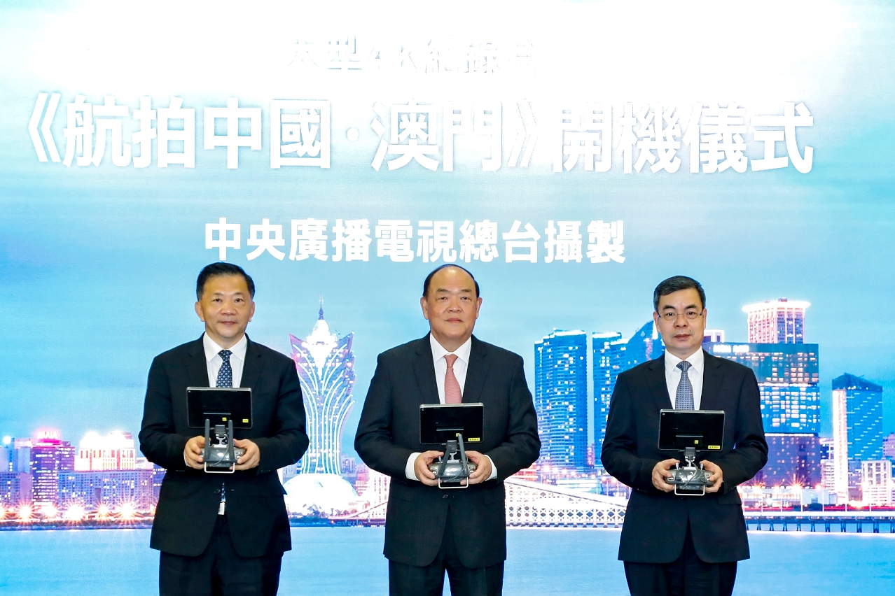Após a cerimónia de assinatura, o Chefe do Executivo, o presidente do China Media Group e o subdirector do Gabinete de Ligação do Governo Central na RAEM presidiram à cerimónia de início de filmagens do documentário de grande escala em 4K “Aerial China · Macau”, que é o primeiro projecto de cooperação depois de firmado este acordo.
