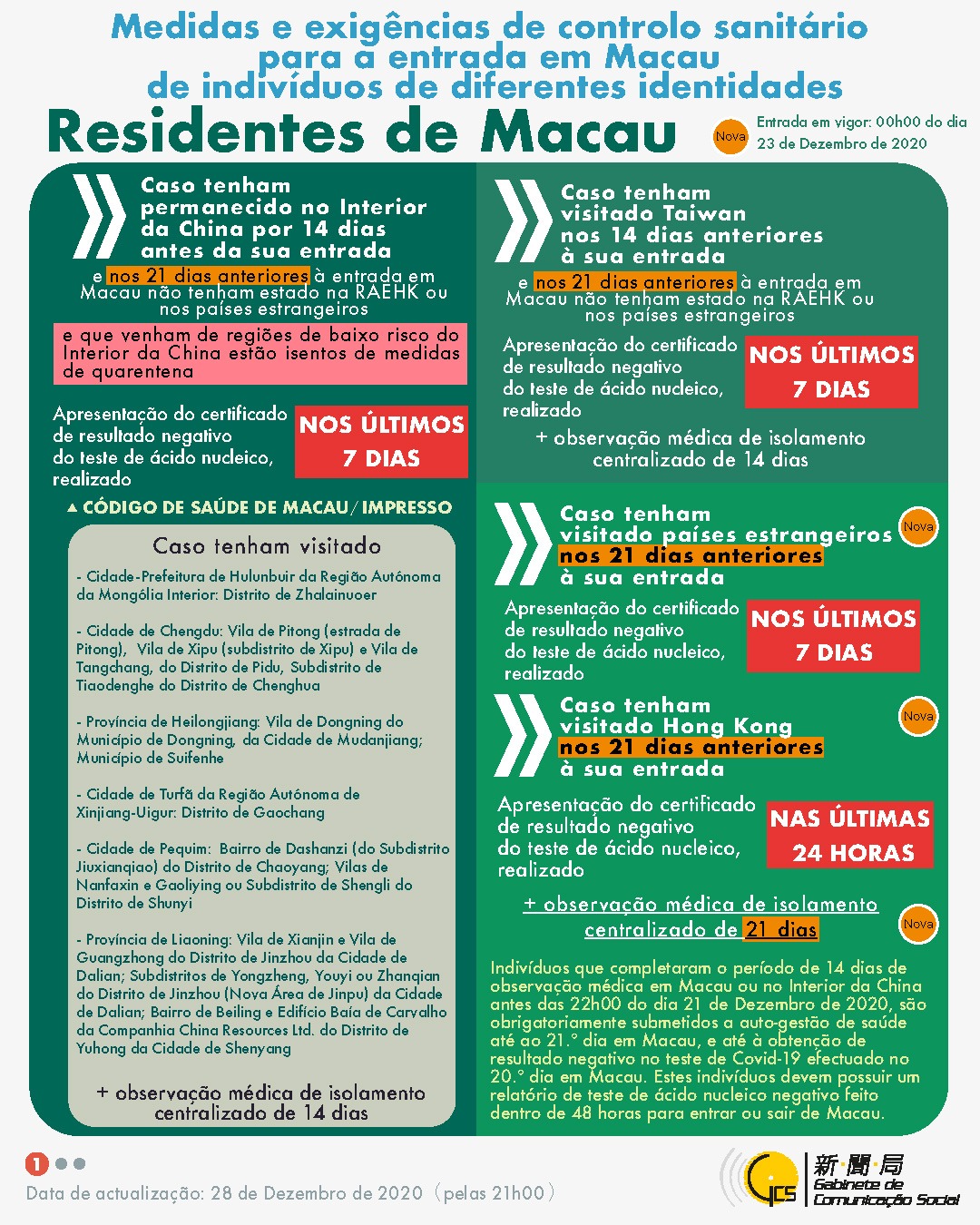(Infografia) Medidas e exigências de controlo sanitário para a entrada em Macau de indivíduos de diferentes identidades