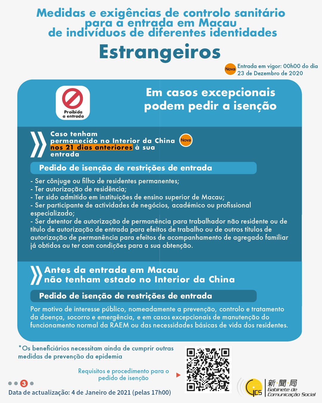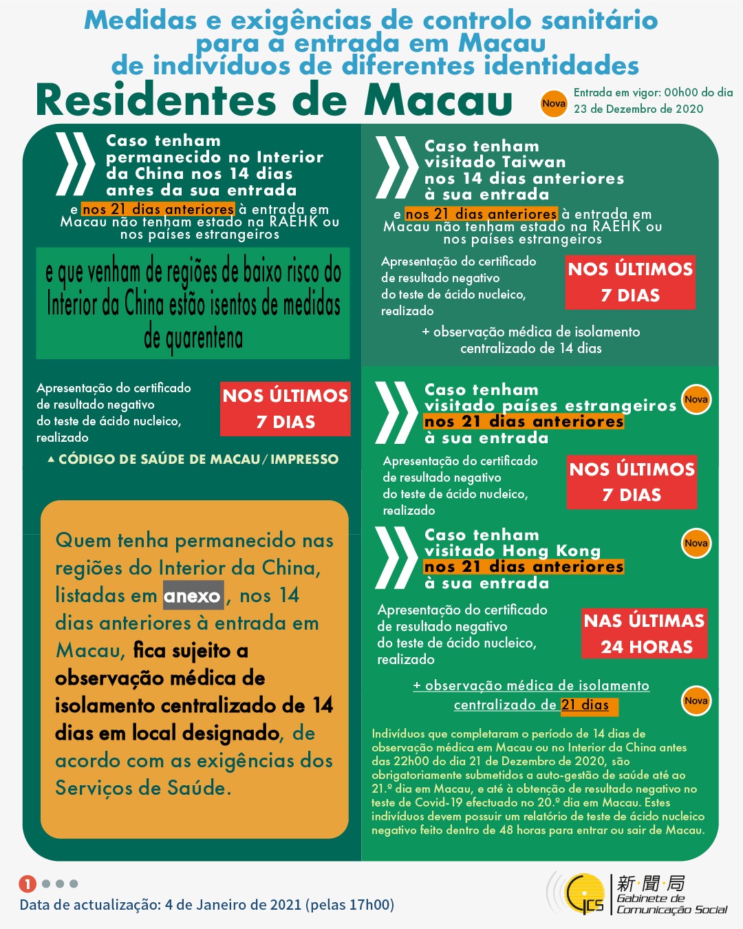 (Infografia) Medidas e exigências de controlo sanitário para a entrada em Macau de indivíduos de diferentes identidades