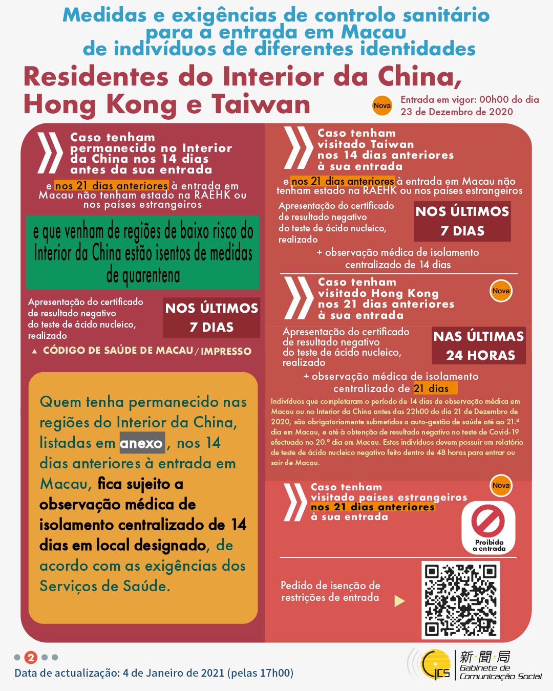 Medidas e exigências de controlo sanitário para a entrada em Macau de indivíduos de diferentes identidades