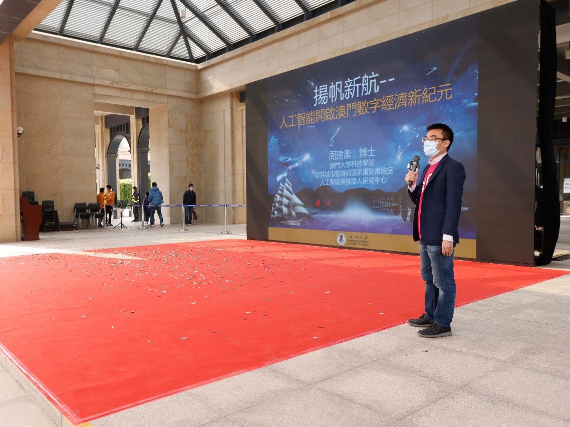 The anniversary slogan ‘Set sail anew on the ruby jubilee’, means that UM is on the threshold of a new era, a time to take stock of past achievements and look ahead to new goals and dreams. The anniversary logo is a combination of the acronym ‘UM’ and the number ‘40’. As the 40th anniversary is also known as the ruby jubilee, the colour ruby has been chosen as the main colour for the occasion. In recent years, UM has made new breakthroughs in the development of artificial intelligence (AI) technologies, such as unmanned vessels, unmanned airplanes, and autonomous buses. Among them, the AI technology for unmanned vessels has won the championship at an international competition. The title of the award-winning technology, ‘Set sail for new horizons’, fits well with the theme of the anniversary. During the ceremony, Prof Zhou Jiantao and the students of Prof Carols Silvestre in the Faculty of Science and Technology shared their research findings through a presentation titled ‘Set Sail for New Horizons – Artificial Intelligence Ushers in a New Era of Digital Economy in Macao’. The UM Chinese Orchestra performed several tunes of Chinese folk music.