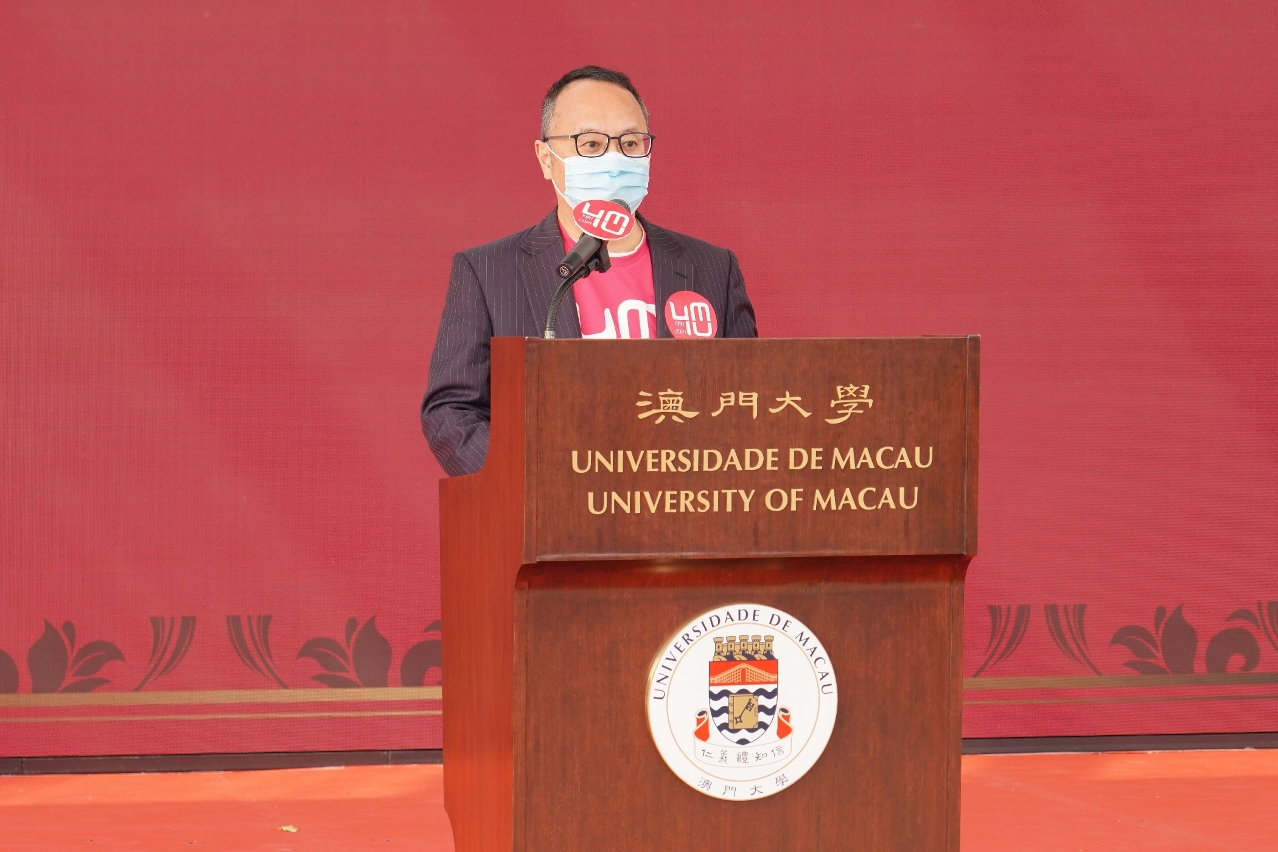 In his speech, Rector Song said that the year 2021 marks the 40th anniversary of the university and the beginning of the 14th Five-Year Plan of China. As Macao integrates into the development of the country, new opportunities beckon. With an open and confident mindset, and an innovative and enterprising attitude, UM takes stock of past achievements on the milestone of its 40th anniversary and sets sail for new horizons. Looking ahead, UM will continue to fulfil its social responsibility and align with the SAR government's policies and directions in higher education and technological innovation, through quality education, technology transfer, and service to society, in order to promote the diversification and sustainable development of Macao's industries.