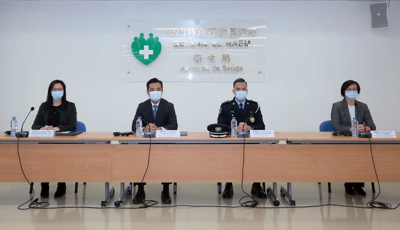Estiveram presentes na conferência de imprensa o Médico-Adjunto da Direcção do CHCSJ, Dr. Alvis Lo Iek Long, o Chefe da Divisão de Operações e Comunicações do Corpo de Polícia de Segurança Pública, Dr. Ma Chio Hong, a Chefe da Divisão de Relações Públicas da Direcção dos Serviços de Turismo, Dr.ª Lau Fong Chi, e a Coordenadora do Núcleo de Prevenção de Doenças Infecciosas e Vigilância de Doença do Centro de Prevenção e Controlo da Doença dos Serviços de Saúde, Dr.ª Leong Iek Hou.