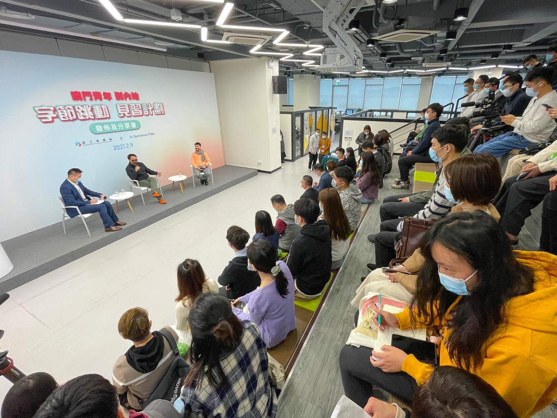 A Direcção dos Serviços para os Assuntos Laborais (DSAL), em cooperação com a “Beijing ByteDance Technology Co. Ltd.” (adiante designada por “ByteDance”), lançou o “Plano de Estágio na ByteDance para Jovens de Macau no Interior da China” (adiante designado por “Plano”). Para que os jovens interessados em integrar no sector da tecnologia de Internet possam conhecer o Plano e as perspectivas de desenvolvimento deste sector, a DSAL realizou hoje (dia 9) uma conferência para lançamento e compartilhamento do Plano no Centro de Incubação de Negócios para os Jovens de Macau, tendo em conta ao número limitado de vagas e ao esgotamento de todas as vagas, assim foi também transmitido em directo o evento ao vivo.