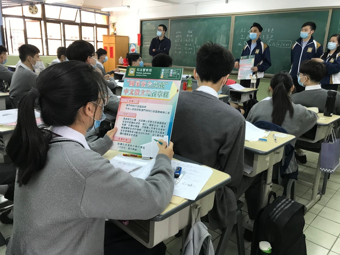 O regulamento e boletins de inscrição do concurso de composição em língua chinesa «Eu e a Segurança Nacional», co-organizado pelo Governo da Região Administrativa Especial de Macau (RAEM) e o Gabinete de Ligação do Governo Popular Central na RAEM, foram enviados, no início de Fevereiro, a todas escolas secundárias de Macau. Os alunos interessados poderão apresentar os textos, até 15 de Março, através da sua escola, e deseja-se a uma participação activa.