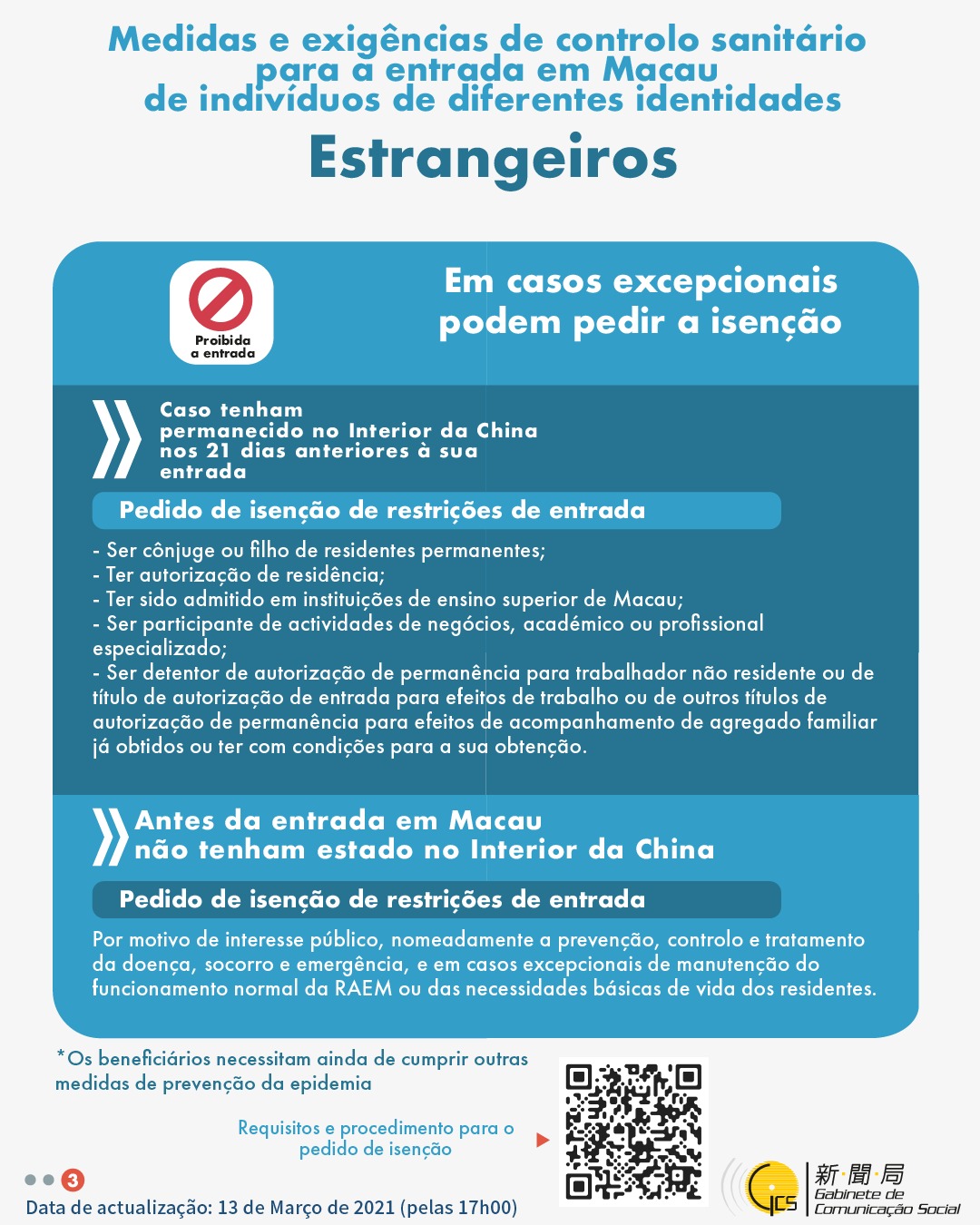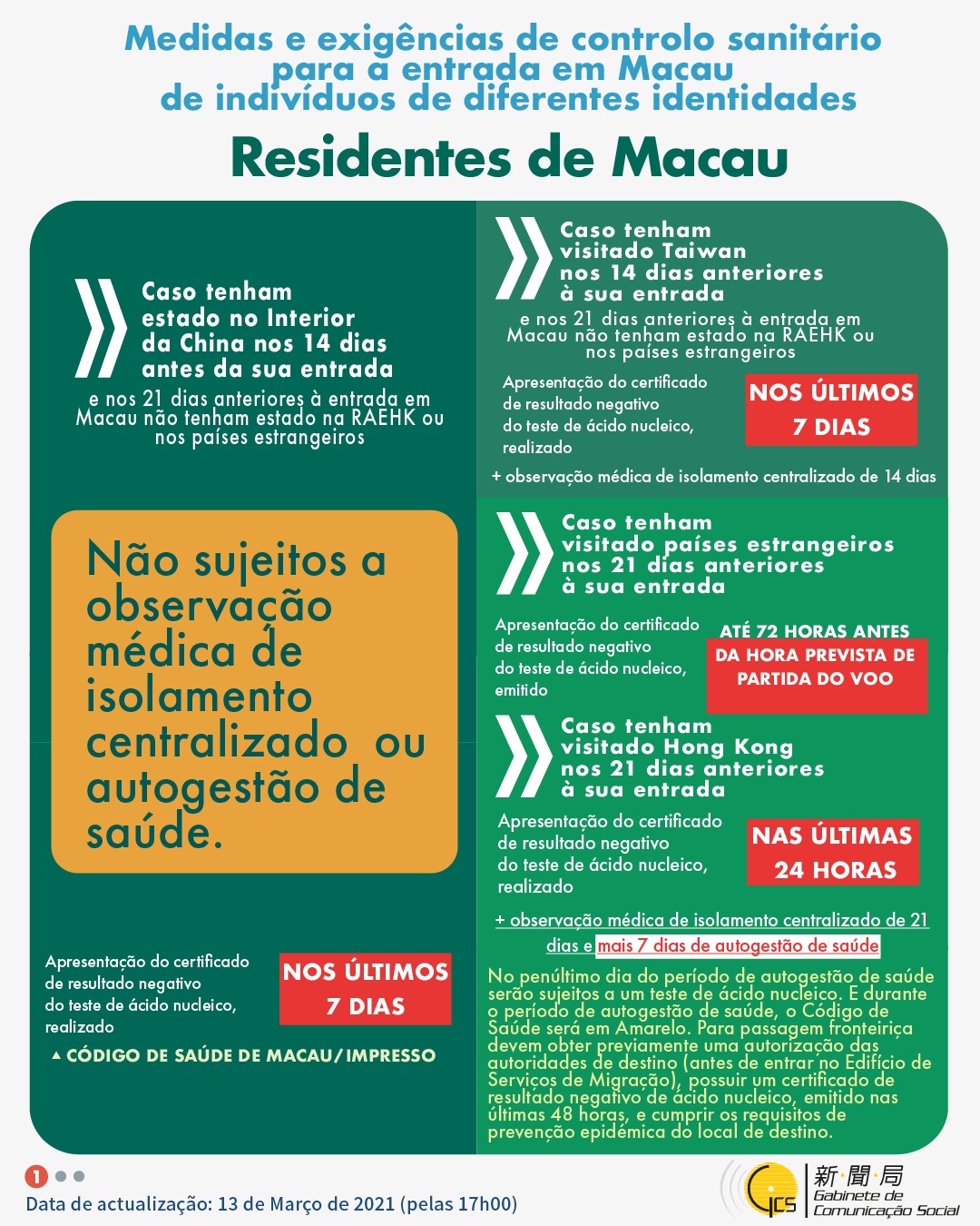 (Infografia)Medidas e exigências de controlo sanitário para a entrada em Macau de indivíduos de diferentes identidades, actualizadas no dia 14 de Março de 2021