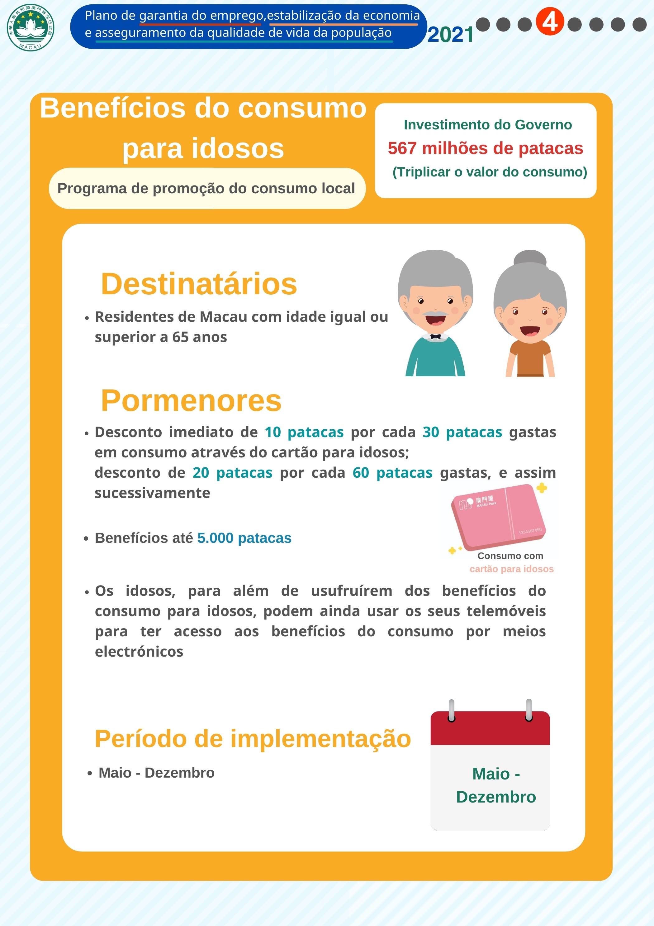 - Benefícios do consumo para idosos (O Governo investe 567 milhões de patacas, visando triplicar o valor do consumo)