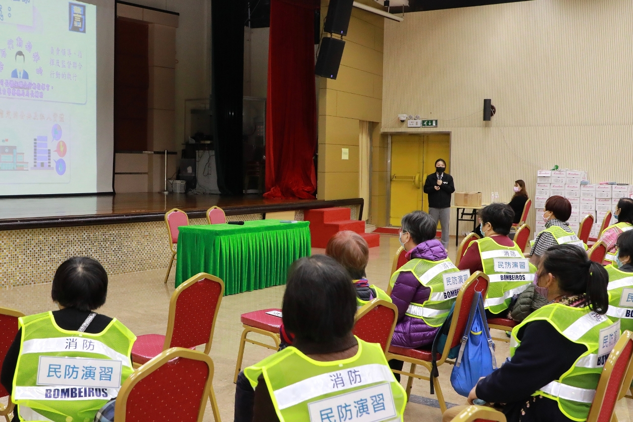 Com o objectivo de aprofundar a consciência de prevenção e redução de desastres e a capacidade de auto-ajuda, bem como garantir a evacuação rápida, segura e ordeira de acordo com as instruções das autoridades na passagem do tufão e “storm surge”, o Corpo de Bombeiros (CB) realizou, na tarde do dia 22 de Março, sob a coordenação dos Serviços de Polícia Unitários (SPU), palestras sobre “plano de evacuação das zonas baixas em situações de “Storm Surge” durante a passagem de tufão” em conjunto com o Instituto de Acção Social (IAS), que teve lugar na Aliança de Povo de Instituição de Macau, procedendo posteriormente ao exercício de evacuação, no sentido de elevar as capacidades de prevenção e resposta a desastres dos moradores e aprofundar o mecanismo de comunicação e colaboração entre esta Corporação e os diversos serviços. Estas palestras e exercícios contaram com a participação de 51 residentes.