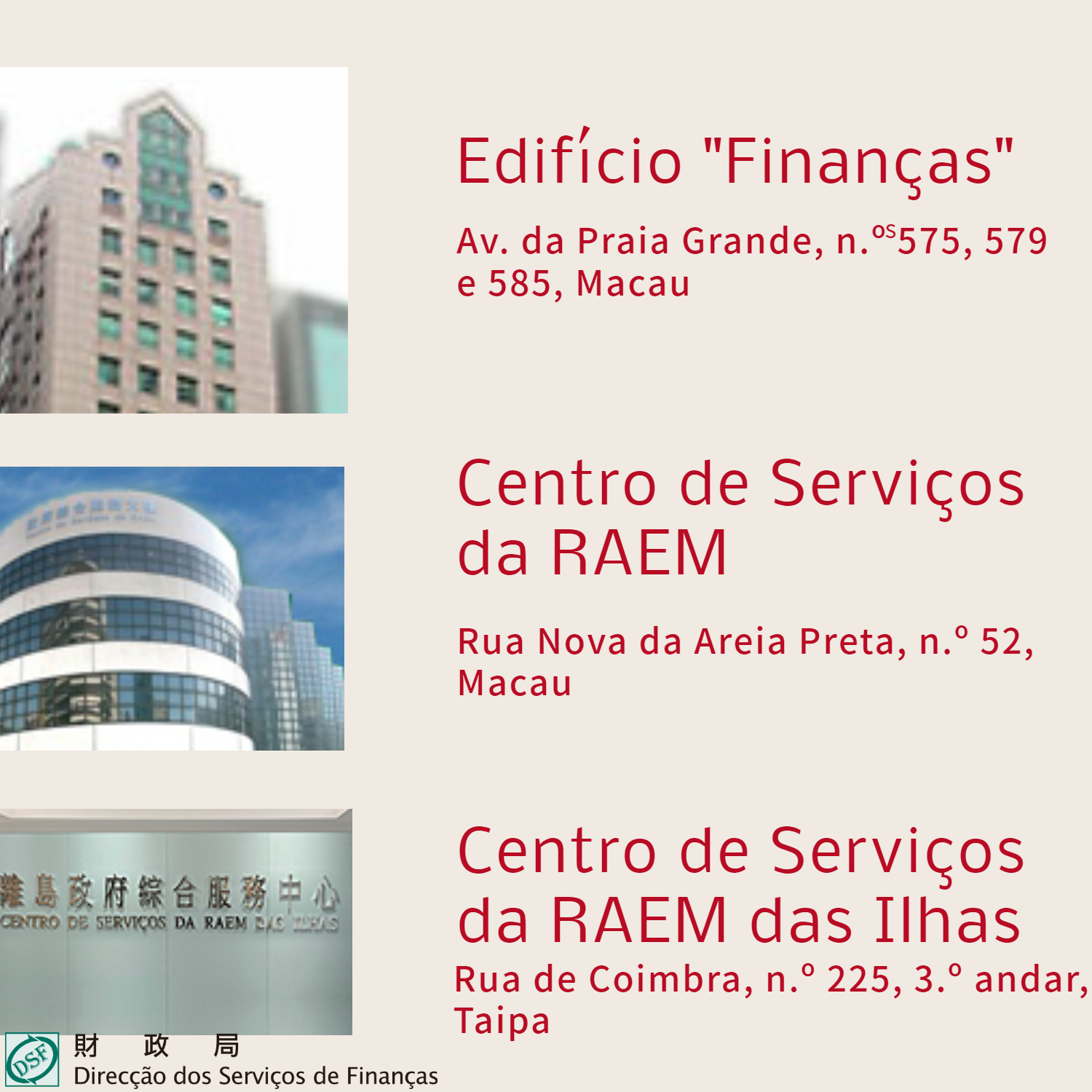 Por fim, a Direcção dos Serviços de Finanças relembra aos contribuintes que apresentem as declarações atempadamente, para evitar serem multados. Os cidadãos podem deslocar-se durante o horário de expediente aos seguintes locais ou entregar os modelos por via electrónica: