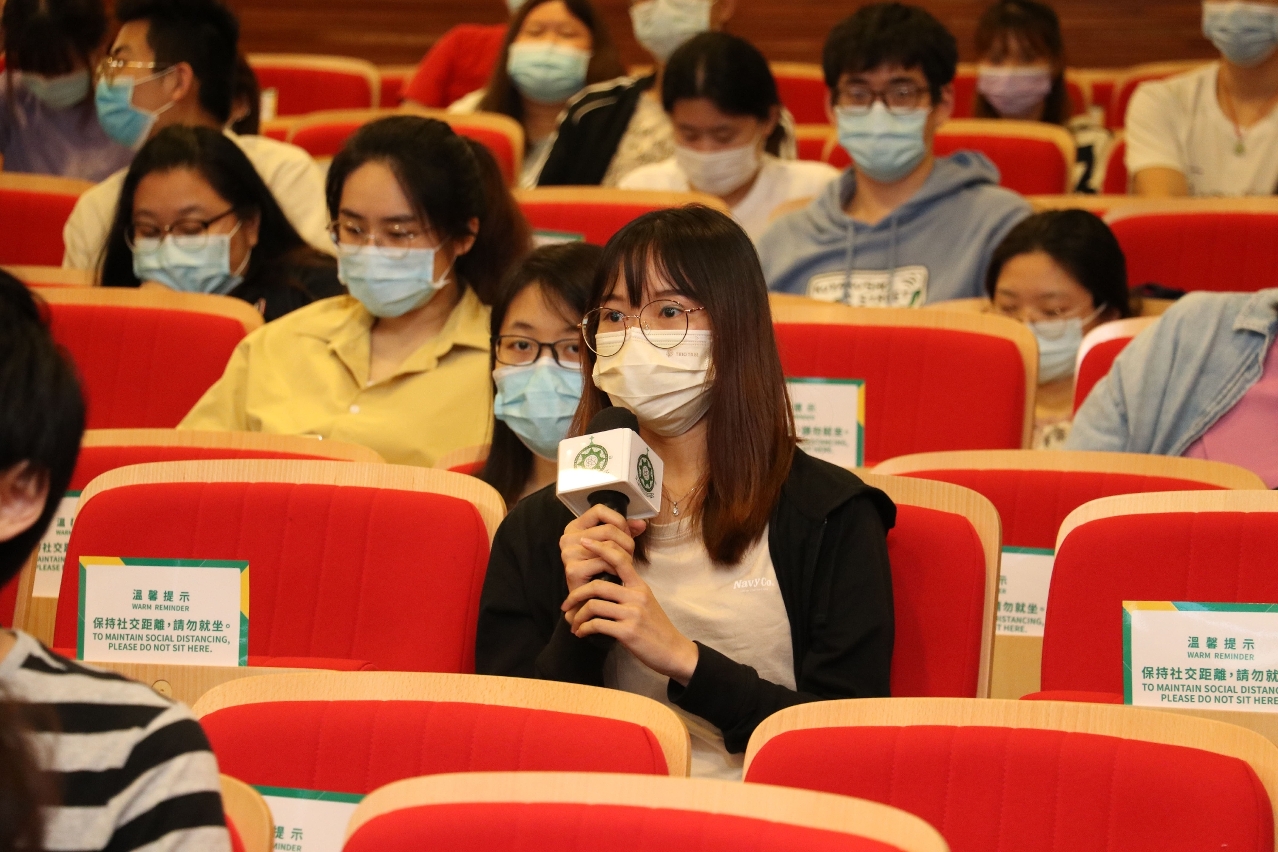 Tony Hoi, por outro lado, falou sobre a sua experiência nos trabalhos de consultoria de investimento e organização de actividades de convenção e exposição dentro do enquadramento da relação de cooperação entre a China e os países de língua portuguesa, com o intuito de deixar os estudantes entenderem que há diversas saídas para a sua actividade profissional e fazer o respectivo planeamento da carreira profissional. Além disso, o mesmo ainda apresentou o programa de formação de quadros bilingues, em chinês e português, na área de Direito, o qual permite aos licenciados dirigirem-se aos países de língua portuguesa para aprender a língua portuguesa e prosseguir os seus estudos de mestrado em Direito.