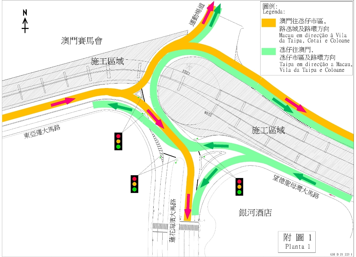 Manter-se-á inalterada a circulação de veículos com viragem à esquerda da Avenida Marginal Flor de Lótus em direcção à Ponte de Sai Van, da Avenida dos Jogos da Ásia Oriental em direcção à Vila da Taipa, bem como da Estrada da Baía de Nossa Senhora da Esperança em direcção à Avenida Marginal Flor de Lótus.
