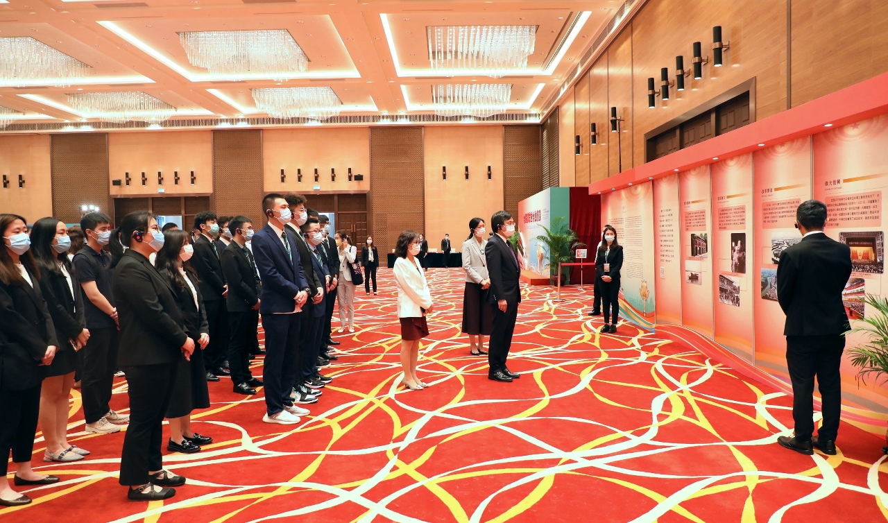 Para continuar a consolidar a defesa da segurança nacional, promover as tradições de Amor pela Pátria e por Macau, reforçar o sentimento de patriotismo e apoiar activamente o Governo da RAEM no aprofundamento da educação sobre a segurança nacional, mais de cem professores e alunos do Instituto Politécnico de Macau (IPM) visitaram, no dia 21 de Abril, a “Exposição sobre a Educação da Segurança Nacional” que está a decorrer no Complexo de Plataforma de Serviços para a Cooperação Comercial entre a China e os Países de Língua Portuguesa. Os professores e alunos participantes manifestaram-se conscientes de que a segurança nacional está intimamente ligada à segurança regional e à vida pessoal, tanto a nível de sociedade, como a nível de economia e de vida quotidiana, estando orgulhosos da prosperidade da Pátria.