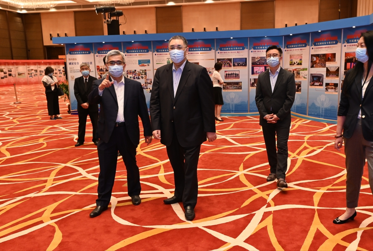 O Chefe do Executivo do terceiro e o quarto da Região Administrativa Especial de Macau (RAEM), Chui Sai On, acompanhado pelo secretário para Segurança, Wong Sio Chak, visitou, hoje (dia 22 de Abril), a «Exposição de Educação sobre a Segurança Nacional» a decorrer no Complexo da Plataforma de Serviços para a Cooperação Comercial entre a China e os Países de Língua Portuguesa.