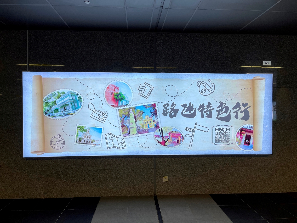 Como por exemplo, devido ao aumento contínuo do número de passagens de barco e do número de turistas registados no Terminal de Pac On da Taipa, é exibida publicidade através das caixas de luz publicitárias de grande tamanho instaladas neste terminal para atrair a atenção dos turistas. A leitura do código QR mostrado nas referidas caixas de luz pode ter acesso imediatamente à página electrónica temática e obter, deste modo, informações populares relativas às lojas supramencionadas.