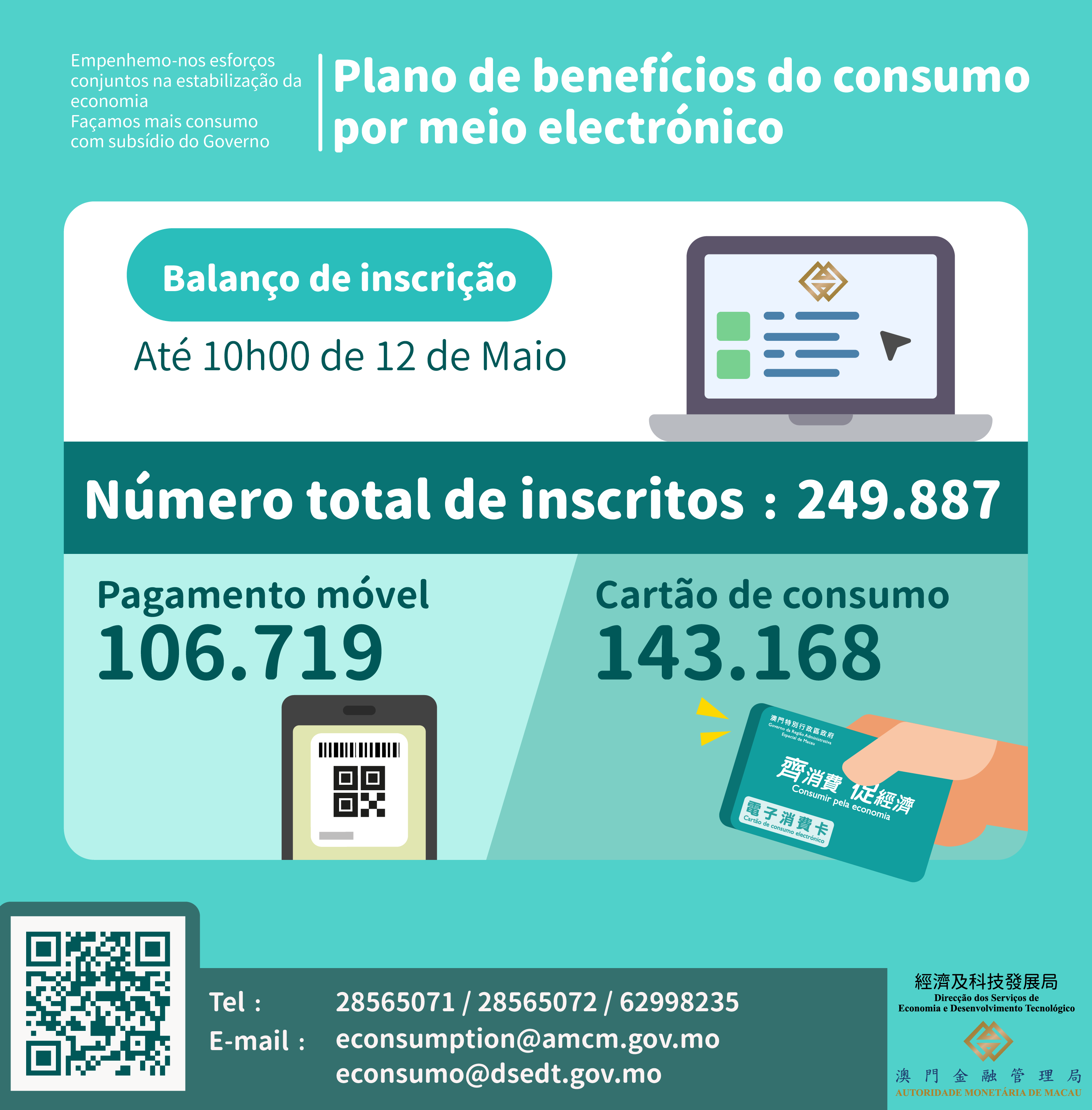 A inscrição online do “Plano de benefícios de consumo por meio electrónico” iniciou-se na sexta-feira passada (7 de Maio), e decorreu sem sobressaltos nos primeiros dias da inscrição. Até 10h00 da manhã de hoje (dia 10), a cerca de 250 mil pessoas concluíram a inscrição, dos quais cerca de 107 mil residentes optaram pela forma de “pagamento móvel” e 143 mil pela forma de “cartão de consumo”, sendo praticamente semelhante a proporção entre as duas formas.