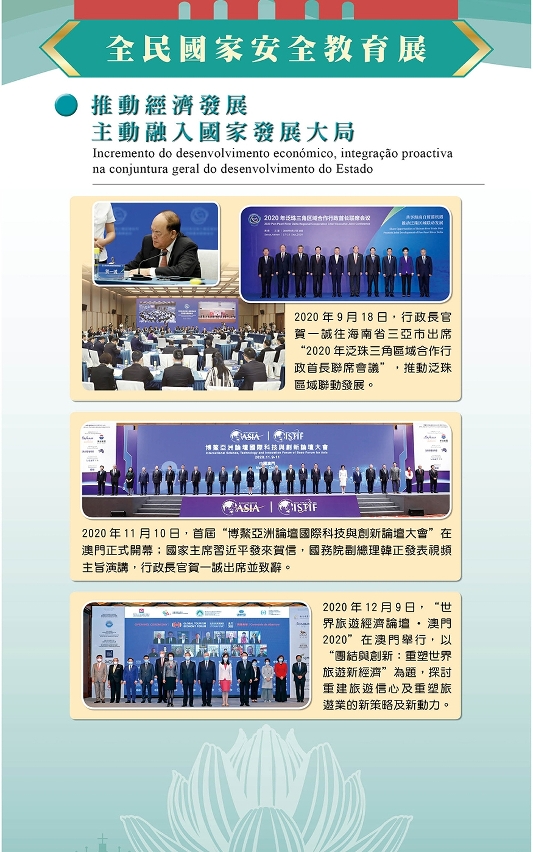 A exibição demonstra também os trabalhos e objectivos impulsionados pelo governo, no último ano, nomeadamente, a economia local, a integração activa no desenvolvimento nacional, bem como, o avanço de uma cooperação profunda entre Guangdong e Macau.