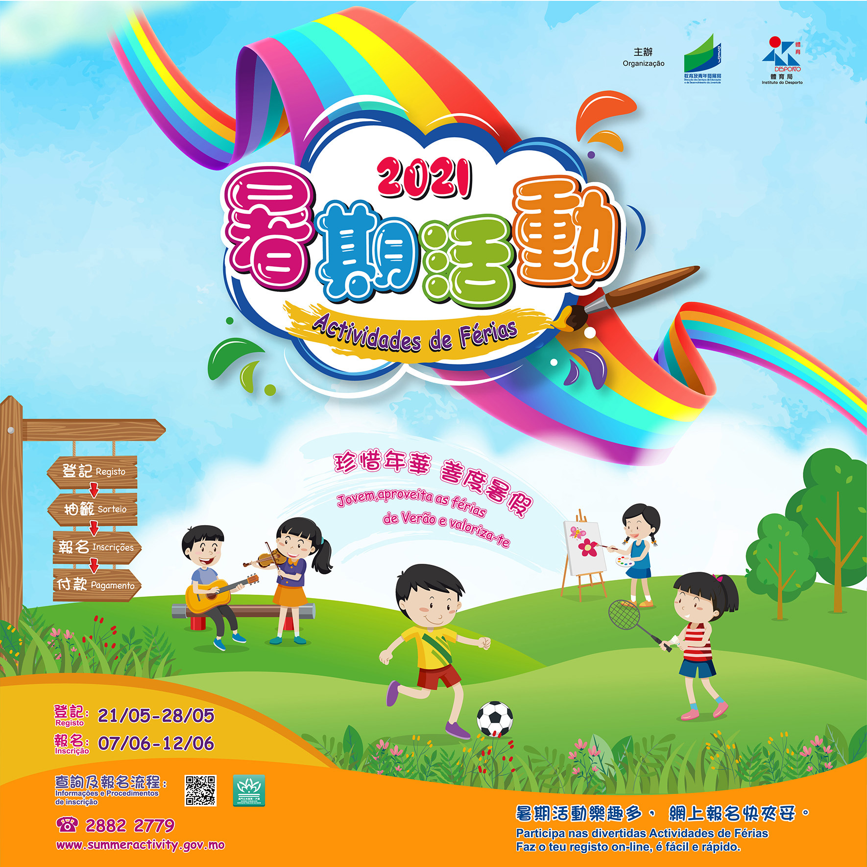 A Organização irá realizar duas sessões de esclarecimento sobre o procedimento das inscrições on line, uma a ter lugar no dia 21 de Maio no Centro de Experimentação para Jovens, e outra no dia 22 de Maio, no Centro de Educação Parental. Para efeitos de inscrição nas referidas sessões, aceda por favor ao seguinte link: www.summeractivity.gov.mo/sasmember/signup , sejam bem-vindos a participar.