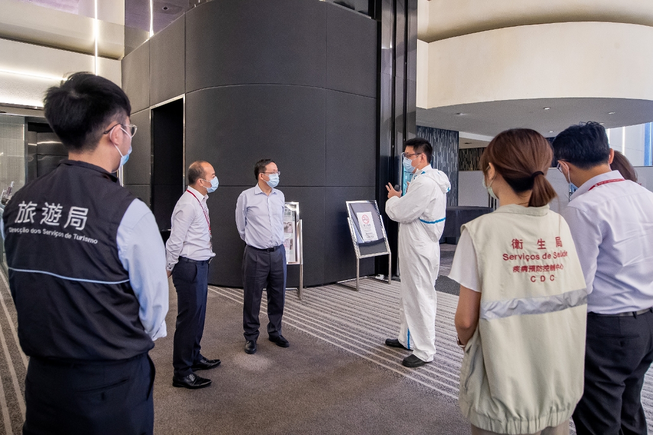 A fim de gerir centralmente as pessoas provenientes de áreas de alto risco que chegam a Macau e reduzir o risco de transmissão e disseminação de doença, o Governo da RAEM começou, em Janeiro de 20202, a usar os hotéis como locais de observação médica. Antes do início desta medida cada hotel de observação médica, foi alvo de inspecção pelas autoridades sanitárias e o pessoal de engenharia dos Serviços de Saúde inspecionaram as instalações, os equipamentos dos hotéis, o sistema de ventilação, enviando directrizes e realizando acções de formação especificas para os funcionários do hotel, de modo a garantir um trabalho completo e seguro de prevenção epidémica. Nesta inspecção, todos os detalhes foram novamente revistos.