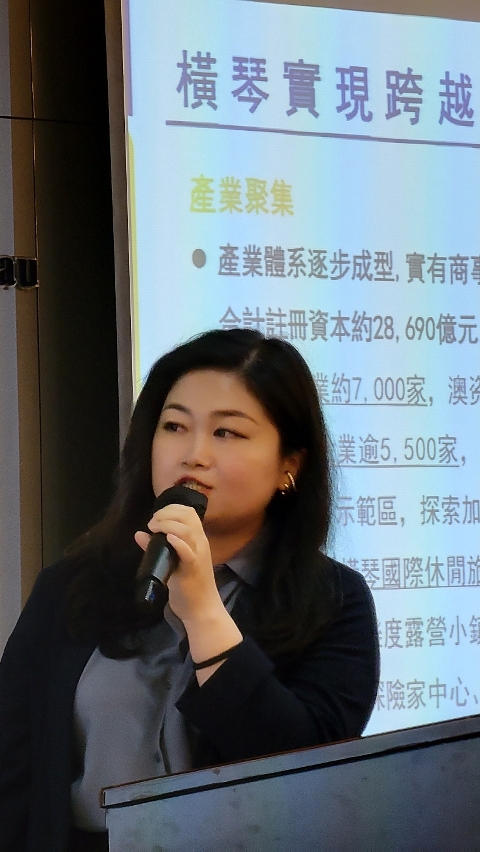 Uma dos palestrantes do Seminário, Li Jin, Directora Executiva da Sociedade de Consultoria de Tecnologia Huameng (Shenzhen) Ltda., abordou sobre o tema de fiscalidade no Interior da China, focando-se nos benefícios fiscais implementados em Shenzhen e Hengqin com análise de casos. Enquanto a outra palestrante, Chen Yaya, Directora de Desenvolvimento de Negócios da Da Heng Qin (Macao) Development Corporation Limited, apresentou o ambiente de inovação e empreendedorismo em Hengqin e as políticas especiais destinadas a Macau, esclarecendo sobre a instalação de empresas de Macau em Hengqin, bem como o desenvolvimento dos talentos de Macau e a inovação e empreendedorismo dos jovens de Macau em Henqin, para além da entrada e saída dos veículos com matrícula única de Macau, permitida em Hengqin.