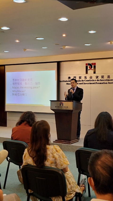 Além disso, o Vogal Executivo do IPIM, Dr. Vincent U, e o Chefe da Divisão da Promoção de Investimento do IPIM, Dr. Ray Chao apresentaram, respectivamente, o ambiente de negócios de Macau, as políticas preferenciais na economia e comércio, a situação de desenvolvimento de diversos sectores industriais, o Serviço “One-Stop” para Investidores do IPIM, entre outros.
