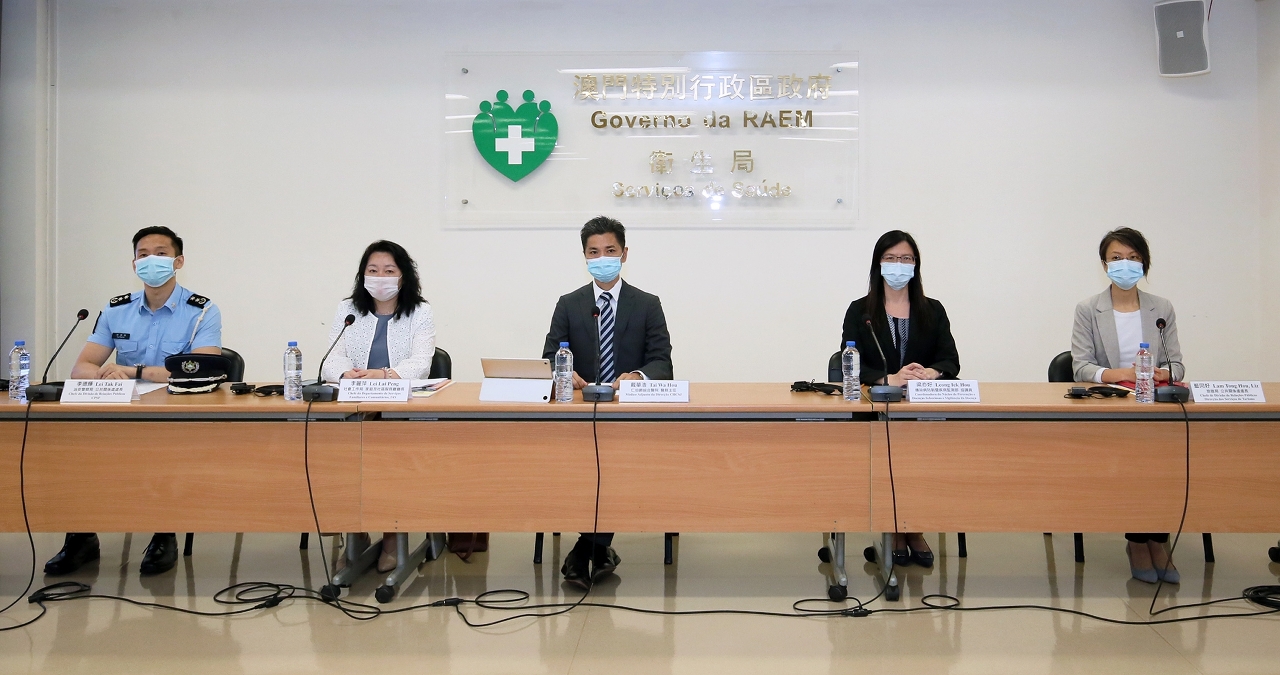 Estiveram presentes na conferência de imprensa: o Médico-Adjunto da Direcção do Centro Hospitalar Conde de São Januário, Dr. Tai Wa Hou, a Chefe do Departamento de Serviços Familiares e Comunitários do Instituto de Acção Social, Dr.ª Lei Lai Peng, a Chefe da Divisão de Relações Públicas da Direcção dos Serviços de Turismo, Dr.ª Lam Tong Hou, o Chefe da Divisão de Ligação entre Polícia e Comunidade e Relações Públicas, Dr. Lei Tak Fai, a Coordenadora do Núcleo de Prevenção de Doenças Infecciosas e Vigilância de Doença do Centro de Prevenção e Controlo da Doença dos Serviços de Saúde, Dr.ª Leong Iek Ho.