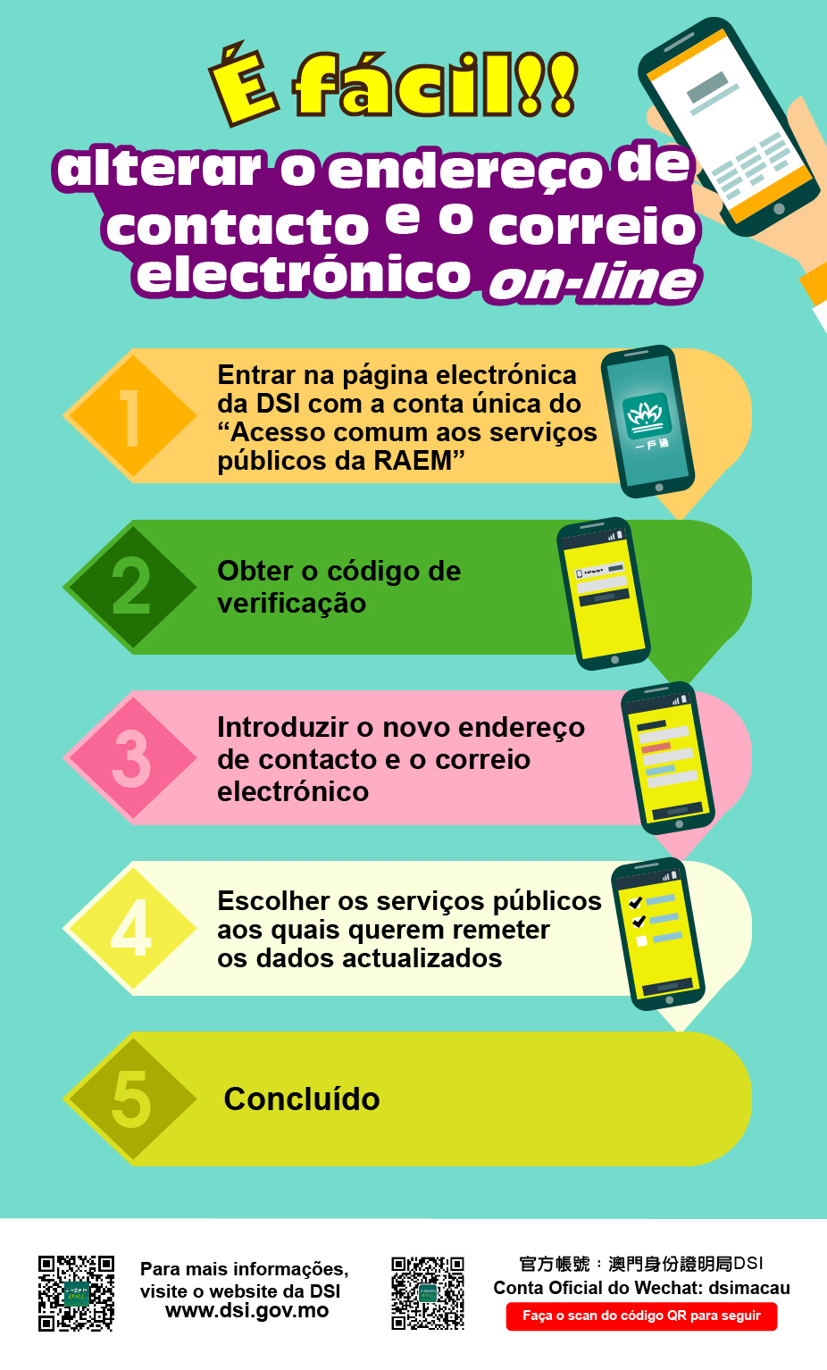 Para qualquer esclarecimento adicional, queira informar-se junto da DSI através dos n.ºs de telefone 2837-0777 ou 2837-0888, ou do correio electrónico info@dsi.gov.mo.
