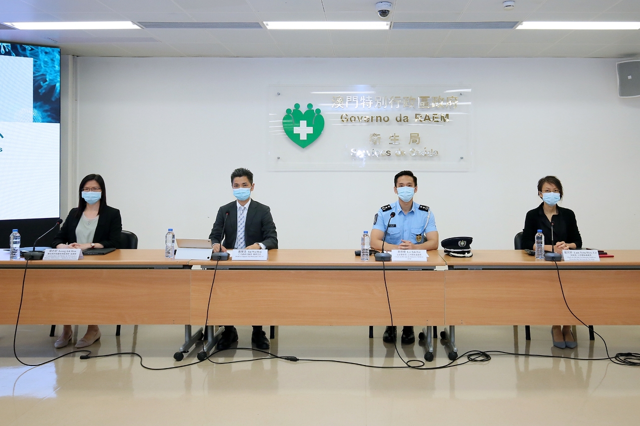 Estiveram presentes na conferência de imprensa: o Médico-Adjunto da Direcção do Centro Hospitalar Conde de São Januário, Dr. Tai Wa Hou, a Chefe da Divisão de Relações Públicas da Direcção dos Serviços de Turismo, Dr.ª Lam Tong Hou, o chefe da Divisão de Ligação entre Polícia e Comunidade e Relações Públicas, Dr. Lei Tak Fai e a Coordenadora do Núcleo de Prevenção de Doenças Infecciosas e Vigilância de Doença do Centro de Prevenção e Controlo da Doença dos Serviços de Saúde, Dr.ª Leong Iek Hou.