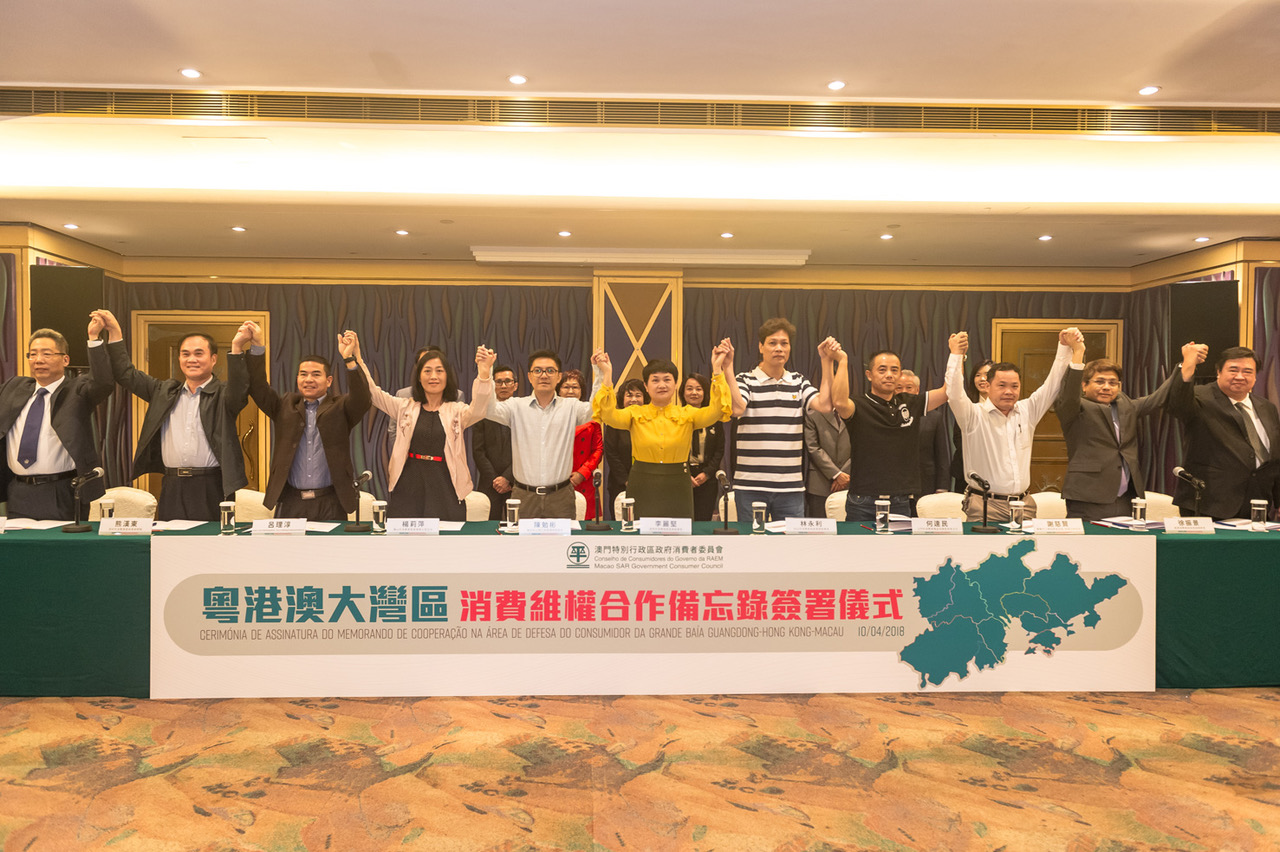 No sentido de aprofundar a cooperação entre as organizações de consumidores da Grande Baía, em Abril de 2018, sob proposta do CC, foi assinado o “Memorando de Cooperação na Área de Defesa do Consumidor da Grande Baía Guangdong-Hong Kong-Macau” entre o CC e as organizações de consumidores de 11 cidades, consistindo o mesmo em promover a cooperação nas áreas de encaminhamento de casos e de partilha de informações. O memorando designa o CC como plataforma de encaminhamento de reclamações entre as organizações da região metropolitana da Grande Baía e de Portugal, sendo daí patenteado o papel do CC enquanto “Uma Plataforma” para o intercâmbio e a cooperação na área de defesa do consumidor entre a China e Portugal.
