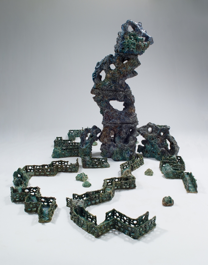 Além disso, 6 peças de criações artísticas colocadas no espaço exterior decorarão qualquer canto da cidade. Especificamente, o artefacto da autoria do artista italiano Riccardo Cordero, “Chacra”, irá representar o centro do espírito humano, sendo as esculturas que formam um círculo, como uma praça dentro de uma praça. O artista chinês Su Xinping, por sua vez, aproveita um par de mãos enormes, no seu trabalho “Encontro”, para criar uma perspectiva de baixo para cima, sob a configuração de uma montanha. Este artefacto proporciona uma sensação de um mundo em constante fractura e reunião. O retrato produzido pela Drawing Architecture Studio (China), “Aprender com Macau”, visa observar, aprender, registar e demonstrar as mudanças na vida diária e recreativa da cidade, através de um mega retrato urbano panorâmico. O trabalho do artista argentino, Leandro Erlich, denominado “Cidade Global”, baseado no conceito de “uma aldeia global” proposto, tenta demonstrar a indivisibilidade da vida humana e o significado realista de partilhar a mesma casa na azáfama das nossas vidas. Além disso, o trabalho de escultura “Tenho Saudades Tuas”, da autoria do artista tailandês Gongkan, visa realçar o conceito de amar com liberdade, e a manifestação do amor sem qualquer restrição. Por fim, o artista egípcio Moataz Nasr, através da sua obra “Barca Solar”, um disco solar composto por 360 pás de remo interligadas numa forma circular, descreve o movimento infinito e interligado dos seres humanos na Terra, em busca de uma vida melhor.