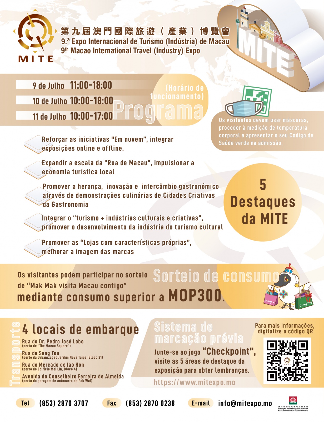 Para mais informações consultar a página electrónica da Expo Internacional de Turismo (Indústria) de Macau ( www.mitexpo.mo ), e as contas oficiais no WeChat e no Facebook.