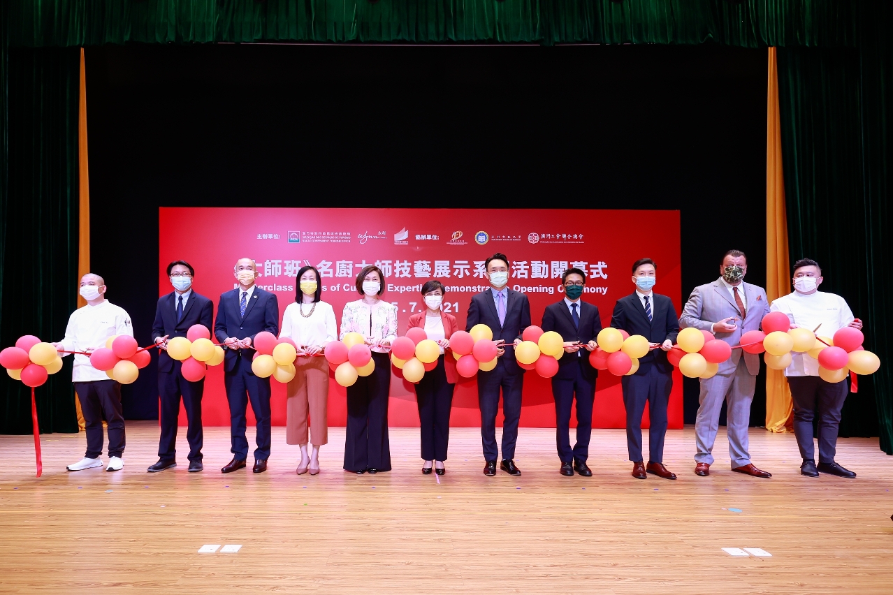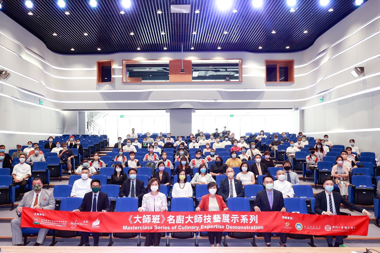 A cerimónia de abertura das demonstrações culinárias no âmbito da série “Aulas com Mestres” e a primeira demonstração culinária da iniciativa, realizou-se hoje (dia 15), no Centro de Actividades do Ensino Técnico-Profissional da DSEDJ, localizado no lote CN6a de Seac Pai Van. A cerimónia contou com a presença da directora da DST, Maria Helena de Senna Fernandes, da presidente do IFTM, Fanny Vong, do subdirector da DST, Cheng Wai Tong, do subdirector da DSEDJ, Kong Chi Meng, da presidente e directora executiva do Wynn Resorts (Macau) S.A., Linda Chen, do chefe da Divisão de Ensino Secundário da DSEDJ, Leong I On, do director da Faculdade de Hospitalidade e Gestão Turística da MUST, Goh Kok Beng, do vice-presidente executivo de restauração do Wynn Macau, Kristoffer Luczak, do vice-presidente da FAOM, Leong Wai Fong, do chefe do restaurante Yongfu, Xu Kunlei, do chefe do restaurante YongfuChen Yun, Zhou Chen, entre outros.