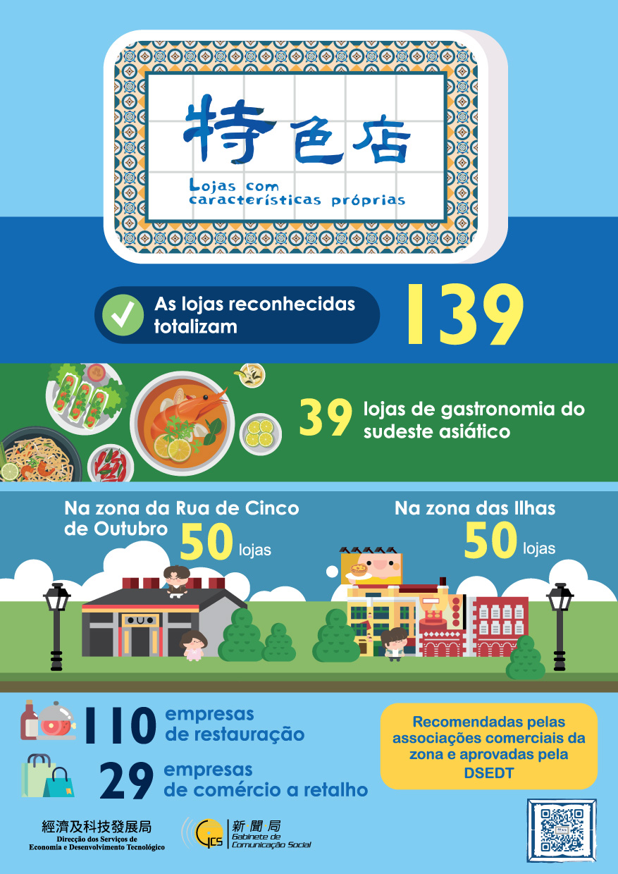 Com base nos bons resultados conquistados nas duas fases do “Plano das lojas com características próprias” implementadas no ano transacto, a DSEDT ampliou, em Abril, o âmbito do Plano com foco incidido principalmente na gastronomia do sudeste asiático, tendo sido atraídas sucessivamente mais 39 lojas a aderirem ao Plano. Até ao presente, o número das lojas com características próprias de Macau aumentou para 139.