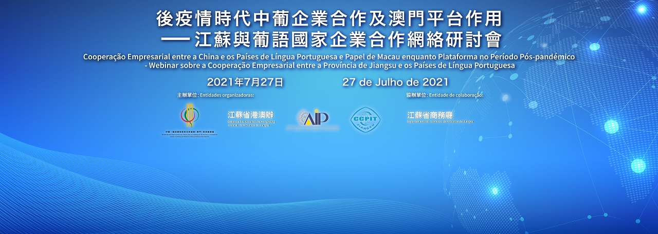 A fim de promover a cooperação empresarial entre os Municípios e Províncias do Interior da China e os Países de Língua Portuguesa, o Secretariado Permanente do Fórum de Macau organizou, no dia 27 de Julho, em colaboração com a Associação Industrial Portuguesa (AIP), o Gabinete dos Assuntos de Hong Kong e Macau e o Conselho Chinês para a Promoção do Comércio Internacional da Província de Jiangsu (CCPIT Jiangsu), o Webinar sobre a Cooperação Empresarial entre a Província de Jiangsu e os Países de Língua Portuguesa, intitulado “Cooperação Empresarial entre a China e os Países de Língua Portuguesa e Papel de Macau enquanto Plataforma no Período Pós-pandémico”. Foram convidadas para este seminário online as empresas dos Países de Língua Portuguesa, principalmente de Portugal, dos Municípios e Províncias do Interior da China, principalmente de Jiangsu, e de Macau para o intercâmbio e abordar online, de forma a desenvolver a cooperação pragmática, contribuindo para elevar o nível de cooperação económica e comercial bilateral e multilateral.