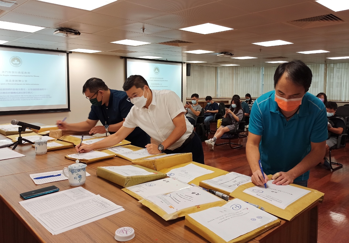 Realizou-se hoje, dia 5 de Agosto de 2021, no Gabinete para o Desenvolvimento de Infra-estruturas, o acto público de abertura das propostas do Concurso Público para «Empreitada de Construção do Teatro Caixa Preta do Centro Cultural de Macau», no qual foram recebidas 23 propostas.