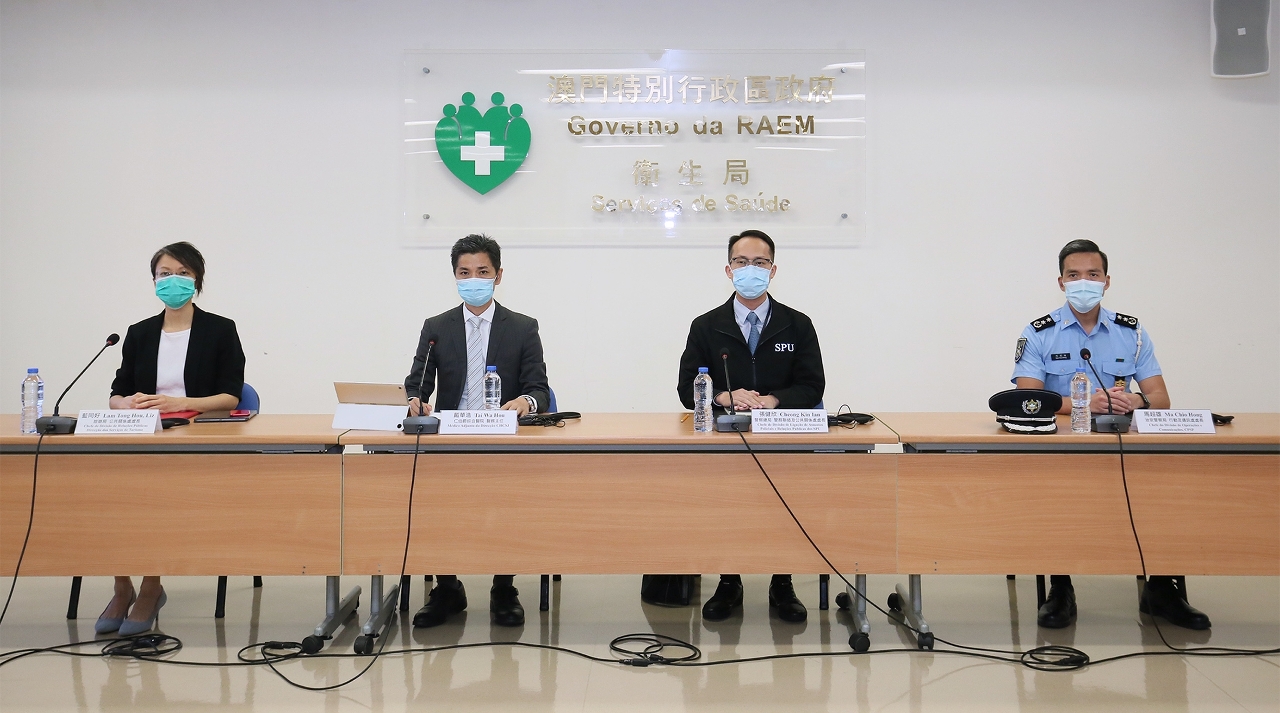Estiveram presentes na conferência de imprensa: o Médico-Aadjunto da Direcção do Centro Hospitalar Conde de São Januário, Dr. Tai Wa Hou, a Chefe da Divisão de Relações Públicas da Direcção dos Serviços de Turismo, Dr.ª Lam Tong Hou, o Chefe da Divisão de Ligação de Assuntos Policiais e Relações-Públicas dos Serviços de Polícia Unitários (SPU), Dr. Cheong Kin Ian, e o Chefe da Divisão de Operações e Comunicações do Corpo de Polícia de Segurança Pública, Dr. Ma Chio Hong.