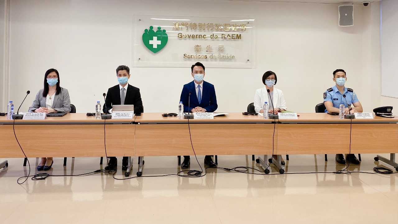Estiveram presentes na conferência de imprensa: o Director subst.o da DSEDJ, Dr. Kong Chi Meng, o Médico-Adjunto da Direcção do Centro Hospitalar Conde de São Januário, Dr. Tai Wa Hou, a Chefe do Departamento de Comunicação e Relações Externas, Dr.ª Lau Fong Chi, o Chefe da Divisão de Relações Públicas do Corpo de Polícia de Segurança Pública, Dr. Lei Tak Fai, e a Coordenadora do Núcleo de Prevenção de Doenças Infecciosas e Vigilância de Doença do Centro de Prevenção e Controlo da Doença dos Serviços de Saúde, Dr.ª Leong Iek Hou.