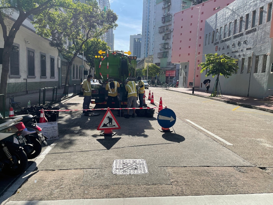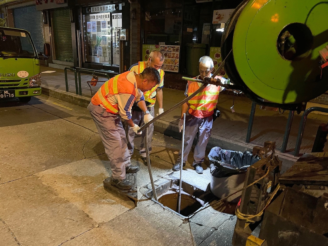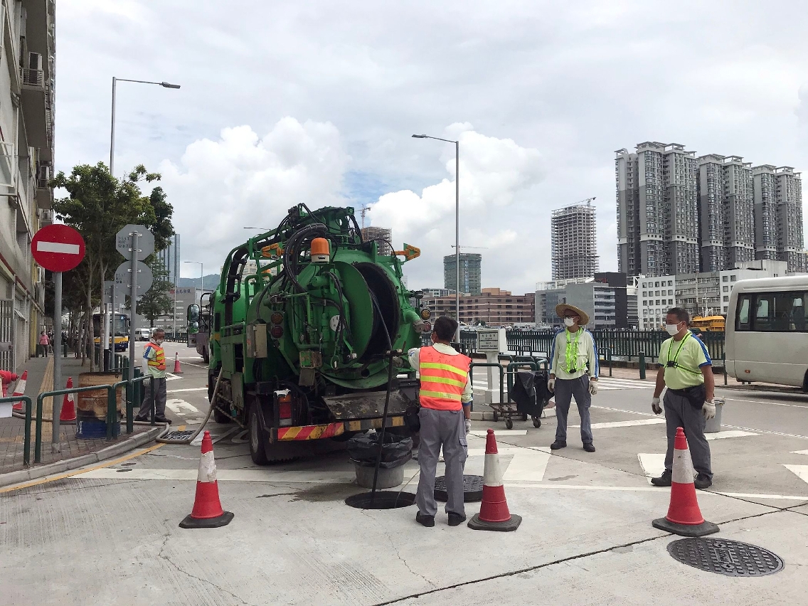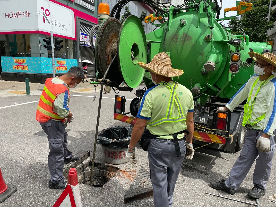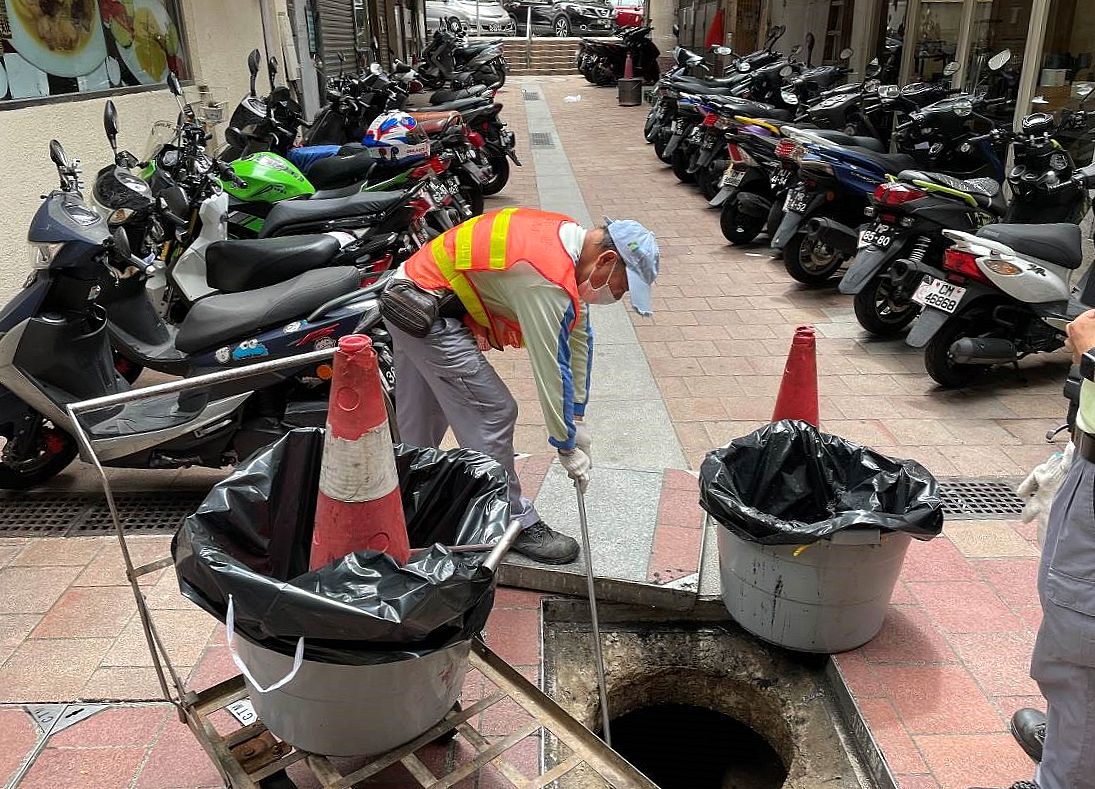 Para assegurar a capacidade de drenagem da rede de esgotos pública, o IAM dá prioridade aos trabalhos de inspecção e desobstrução dos esgotos localizados nas zonas baixas, realizados pelo seu pessoal do serviço de saneamento e pelas entidades adjudicatárias. As zonas dos trabalhos principais são aquelas circundantes dos locais de voto em áreas como Praia do Manduco, San Kio, zona do Lam Mau no Porto Interior, Tói San e Areia Preta. Ao mesmo tempo, procede-se à inspecção e desentupimento dos sumidouros e, tendo em conta as necessidades concretas, realiza-se a limpeza preventiva, para evitar o entupimento.